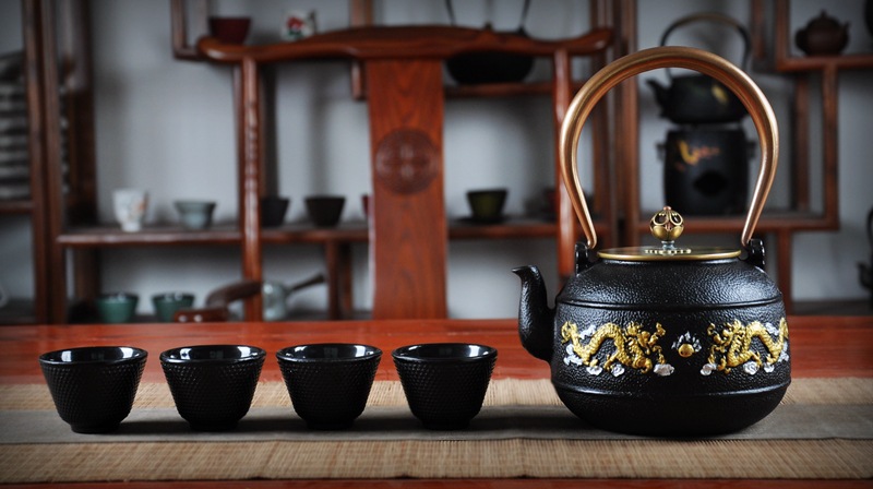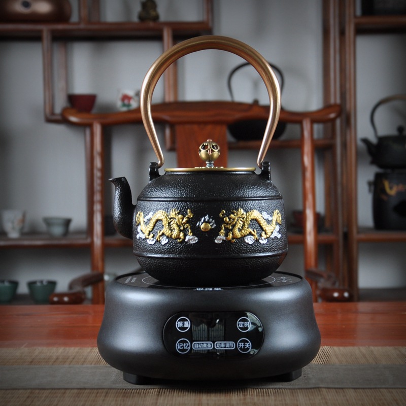 Japanese Style Cast Iron Teapot – Hand Painted with Floral Design – 1.3L Capacity