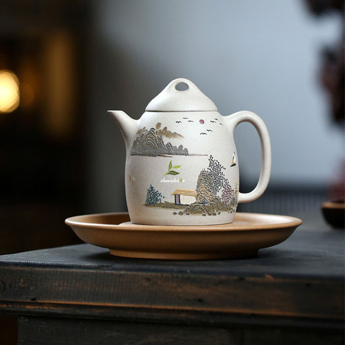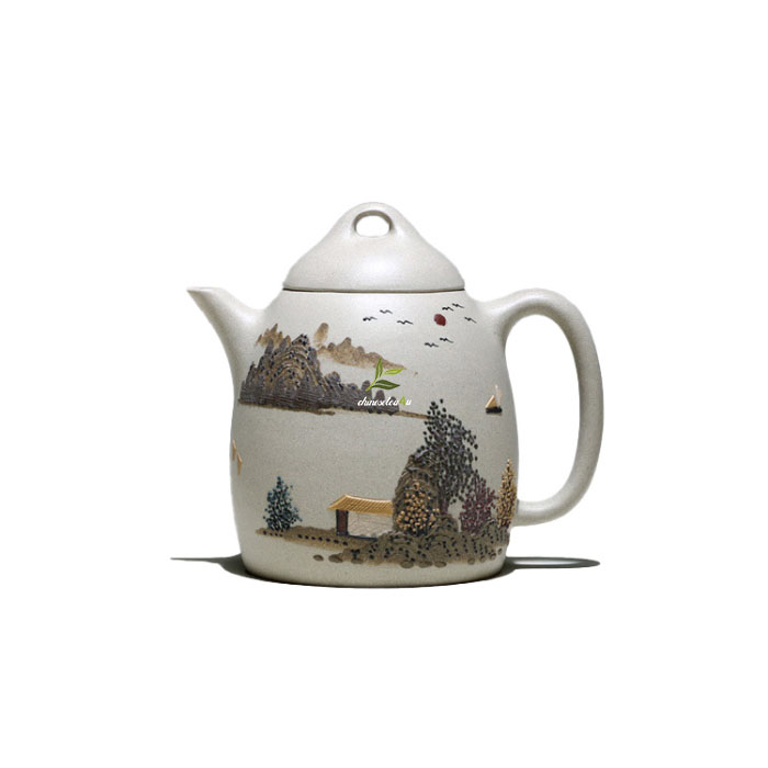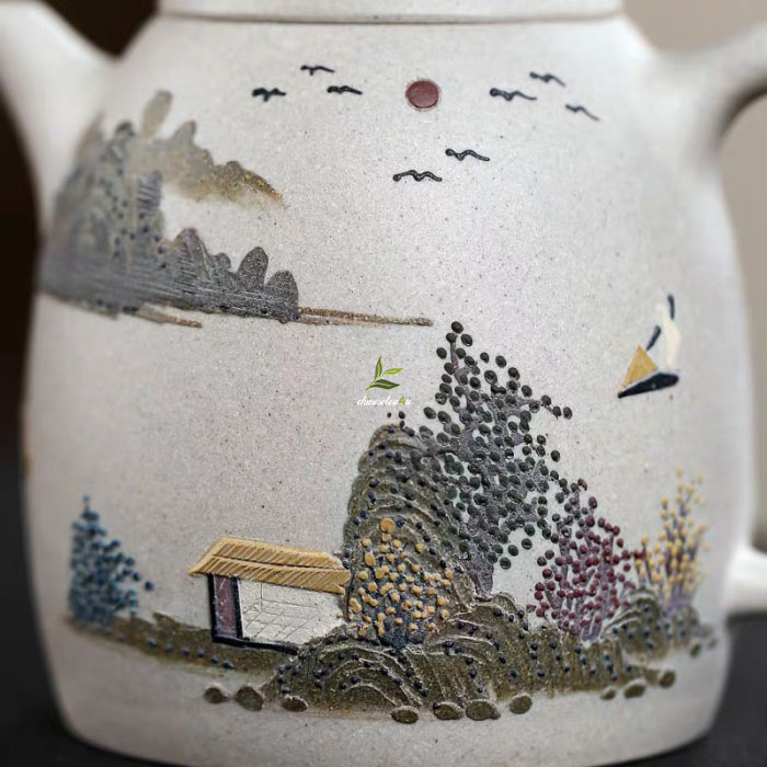 Bai Yu Duan Ni ‘Qinquan’ Yixing Teapot Featuring Delicate Clay Painting: 280ml Capacity