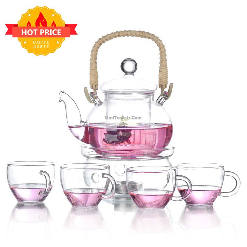 Indulge in the tranquility of tea ceremonies with our exquisite Bamboo Weaving Handle Glass Tea Set. Crafted from high-quality silicon boron glass, this set boasts exceptional durability and can withstand direct heat from an open flame. Perfect for both stovetop and teapot use.