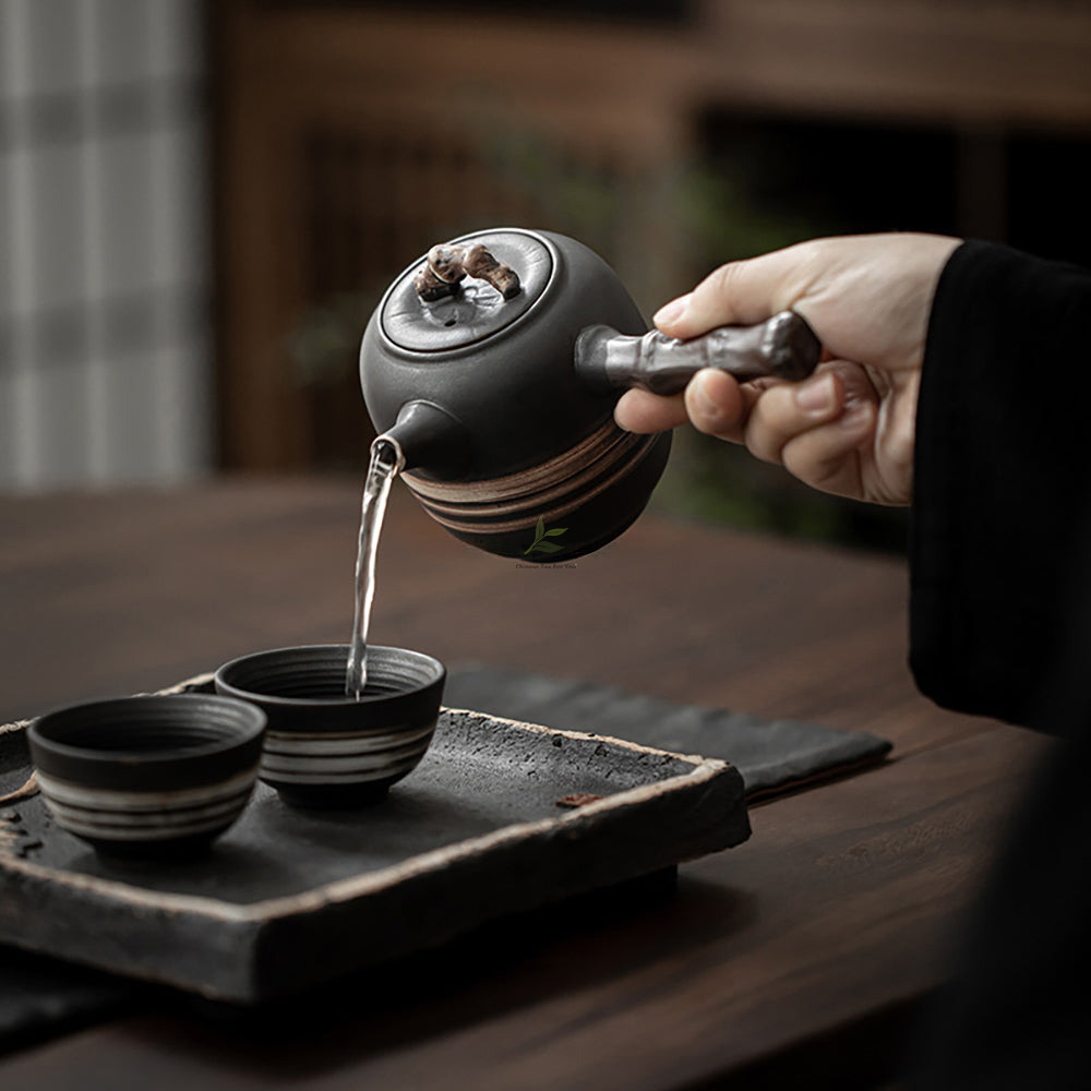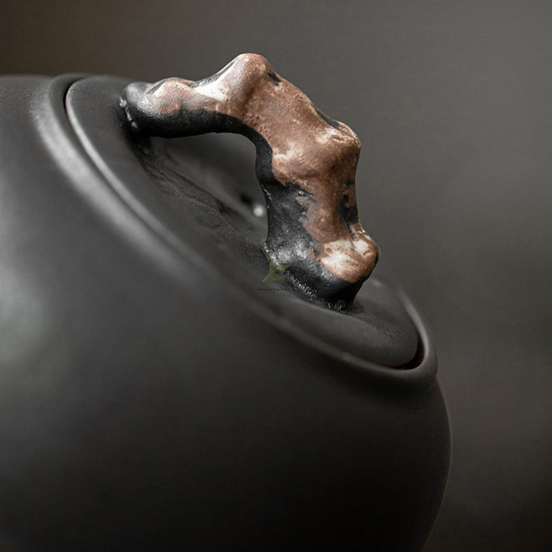 This teapot is shaped around the Wabi-Sabi ideal, where quiet restraint, natural asymmetry, and the grace of aging are all part of the charm. Its mood also reflects the soft, contemplative atmosphere of Tang and Song dynasty China, using muted, weathered finishes to suggest the passage of time without losing elegance.