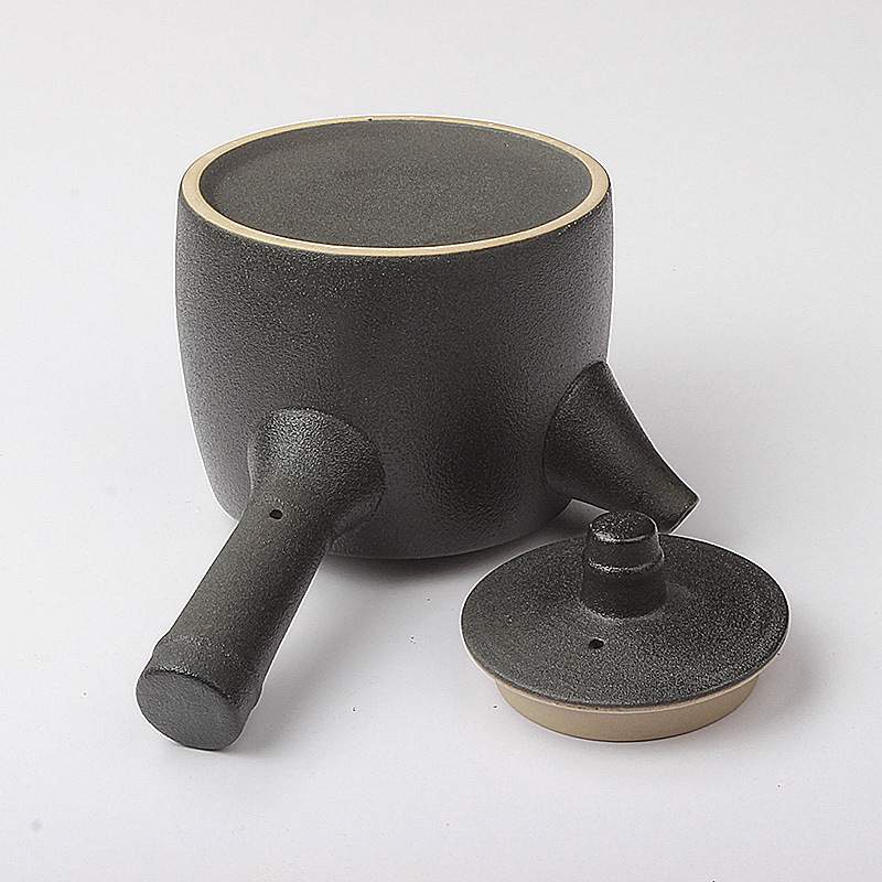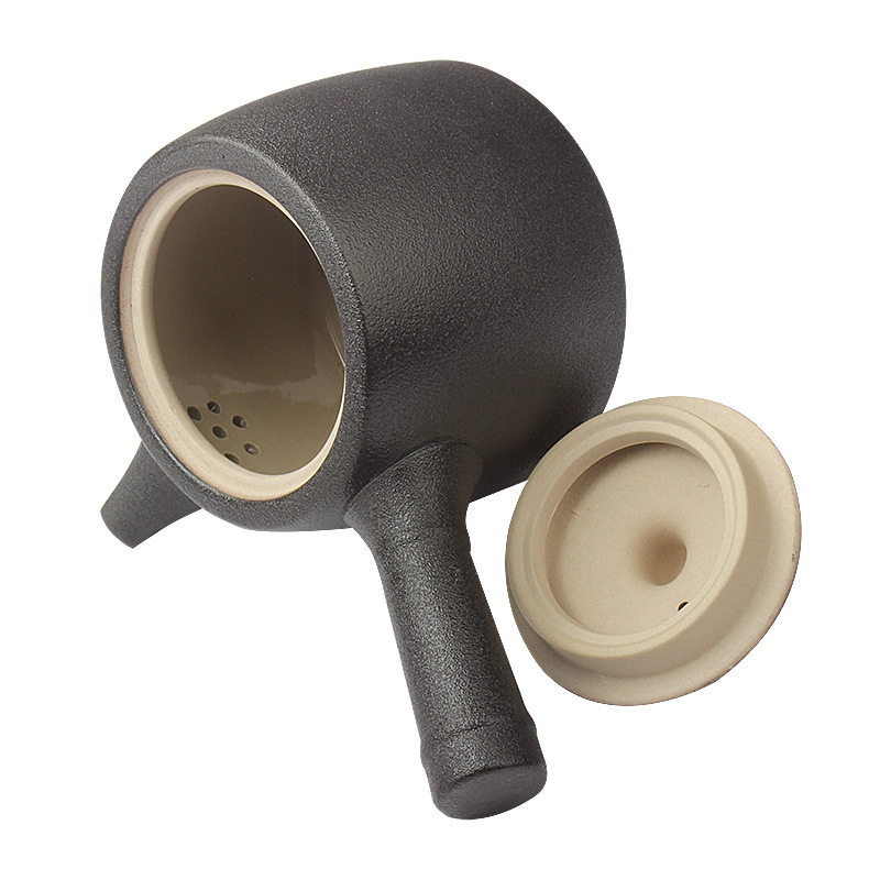 This Black Large Single Pot Ceramic Creativity Teapot is an eye-catching retro teapot designed to provide you with an authentic Chinese tea drinking experience. Featuring elegant black glaze exterior and handle for easy handling, its classic style makes a statement piece in any kitchen while its high quality coarse pottery construction keeps tea warm for extended periods of time.