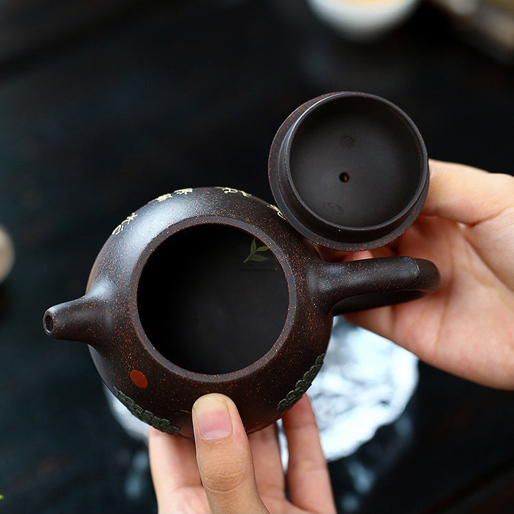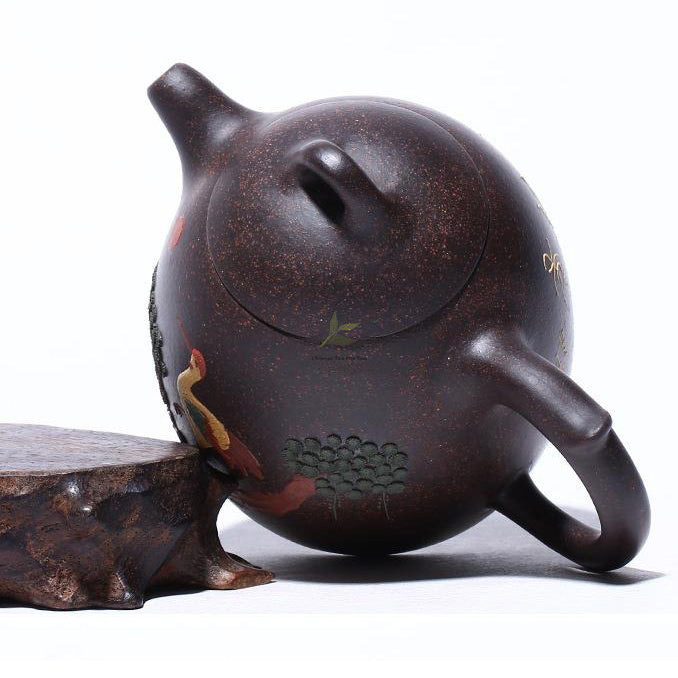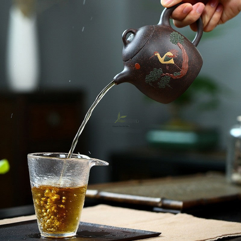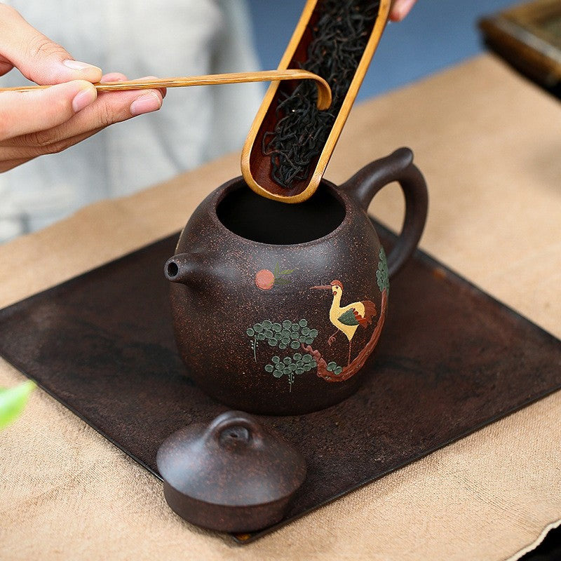 Masterfully crafted with imitation weight shape, our exquisite Yixing Black Golden Clay Pine Crane Teapot embodies the essence of traditional tea culture.