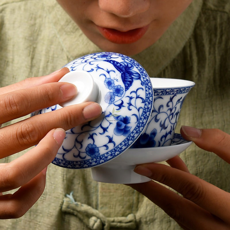 Blue & White Porcelain Flower Gaiwan: A Premium Tea Brewing Vessel for Connoisseurs