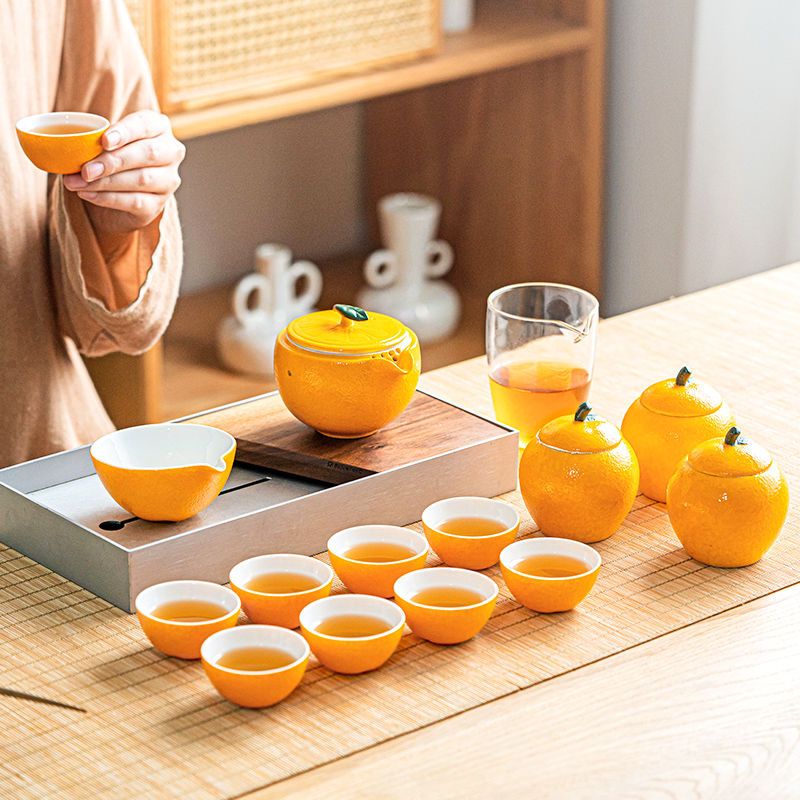 Chinese Orange Tea Set with Travel Set: An Elegant Infusion of Art and Tradition