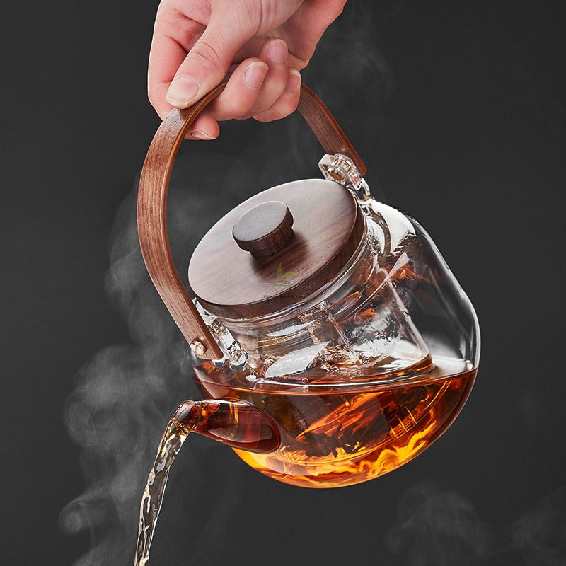 Introducing the Glass Teapot with Water Steam Infuser, meticulously handcrafted by skilled artisans with the utmost precision.