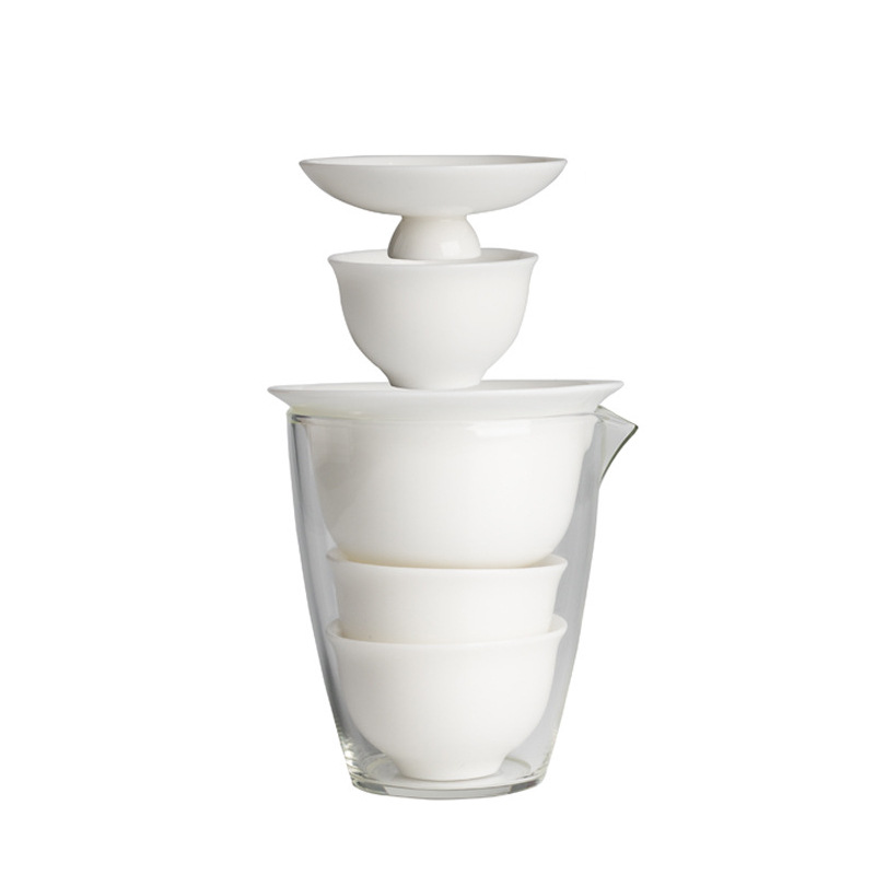 White Porcelain Tea Set – Portable and Ideal for Outdoor Travel – Includes 1 Tea Pot and 3 Tea Cups