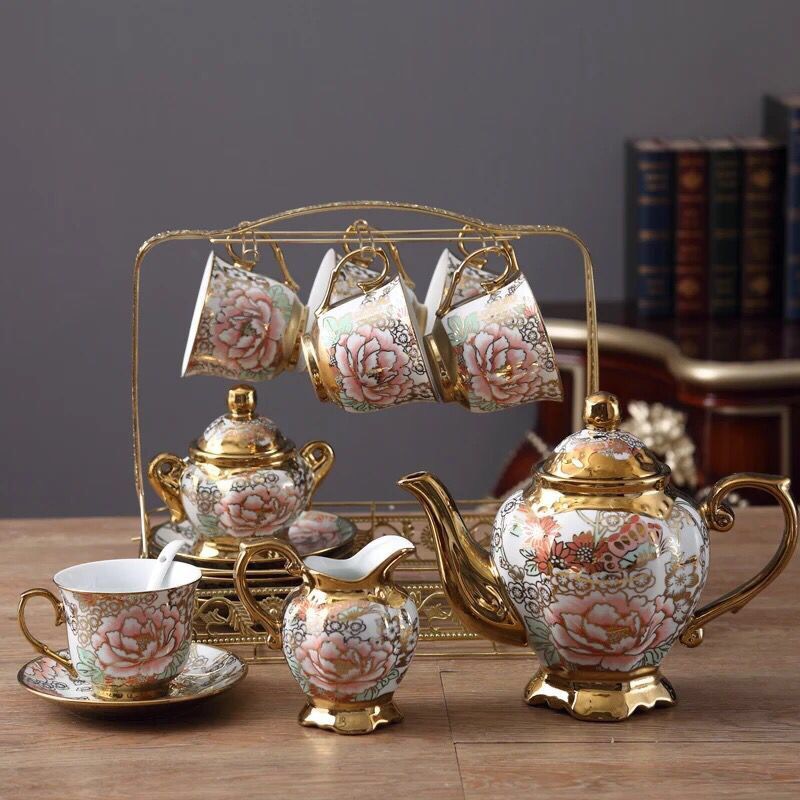 Here are the main features of this Creative Electroplating European Style Porcelain Tea Set: