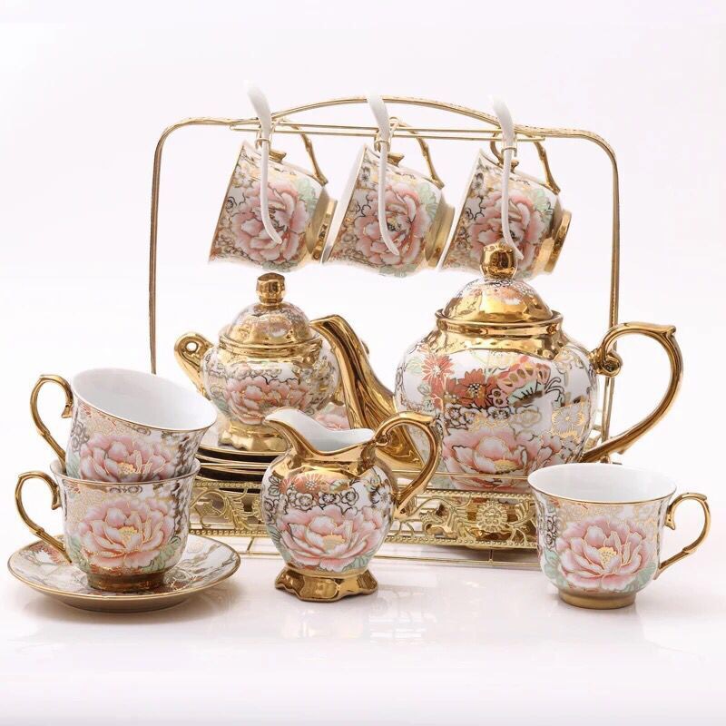 European Style Porcelain Tea Set – 16 Piece Electroplated Set