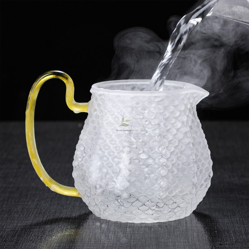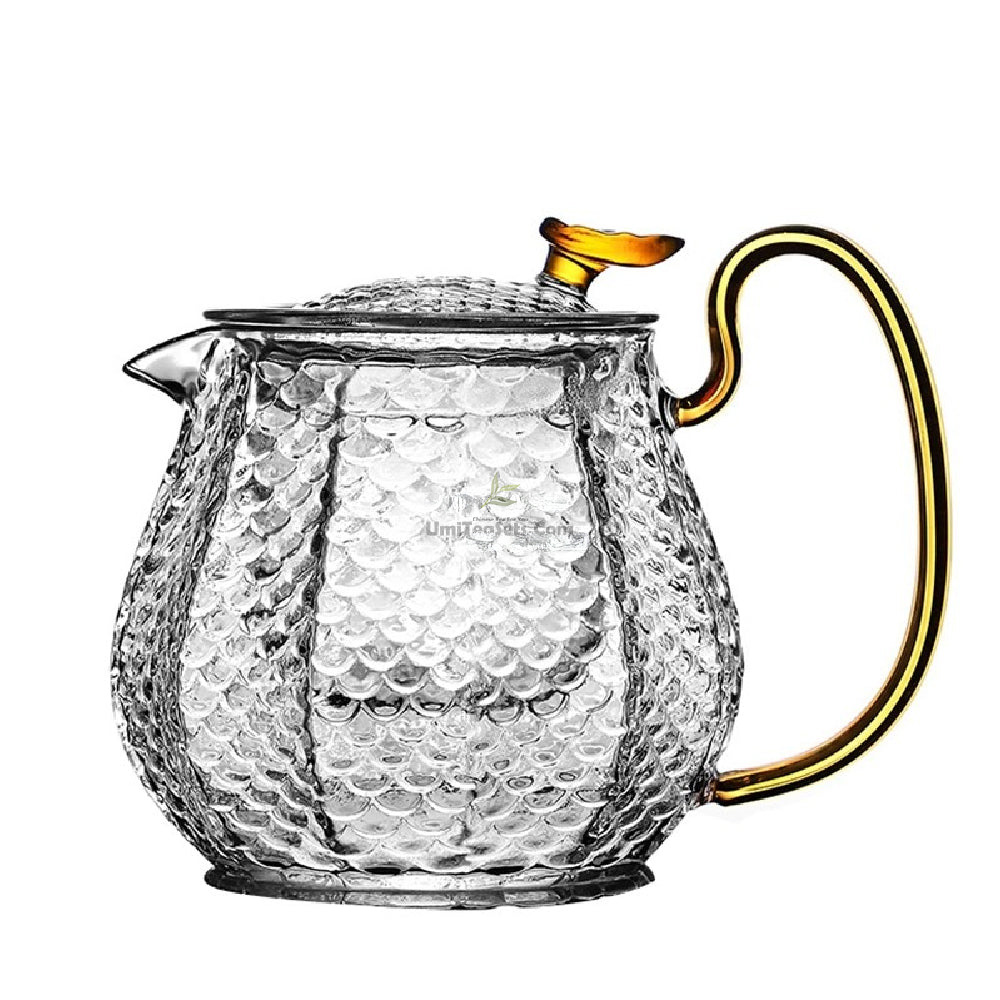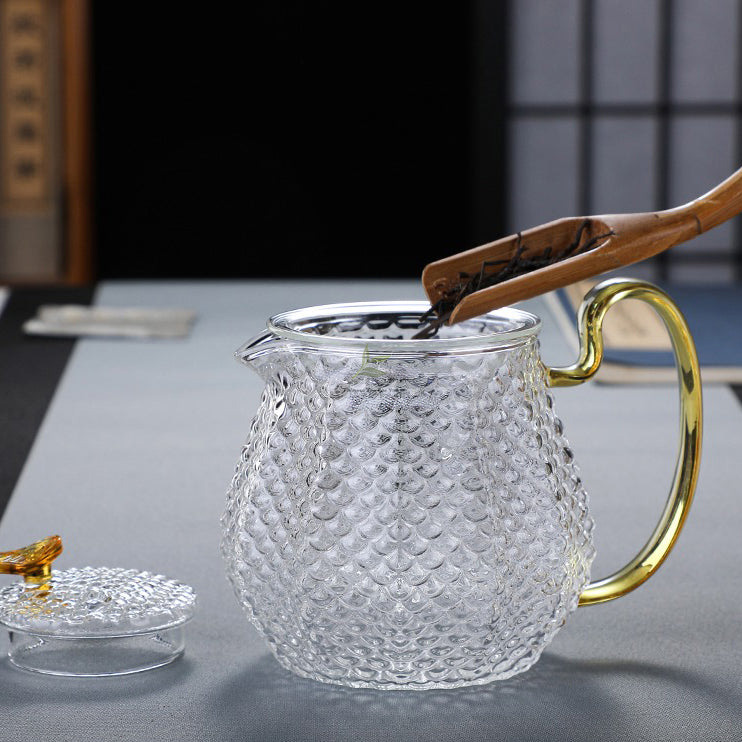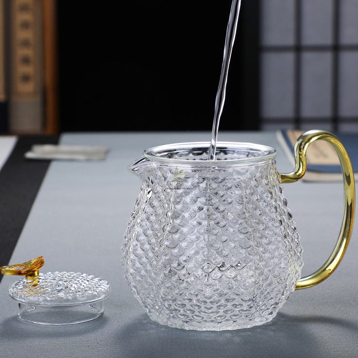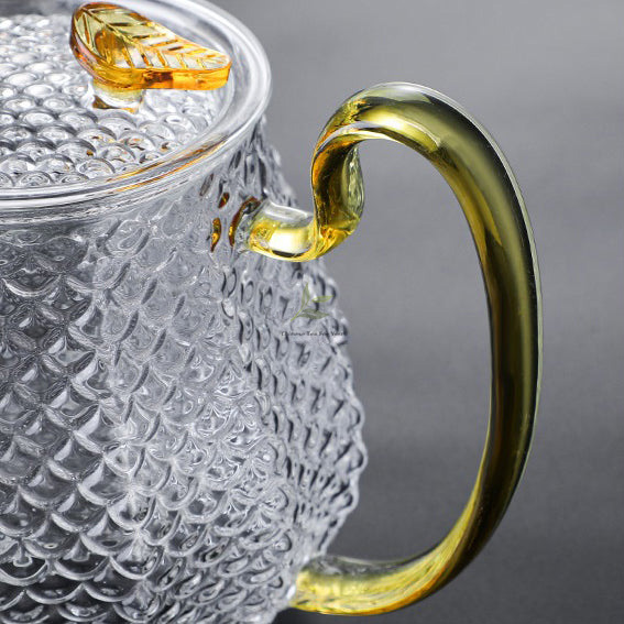Indulge in the art of tea-making with our exquisite Ice Block Glass Teapot with Color Handle.