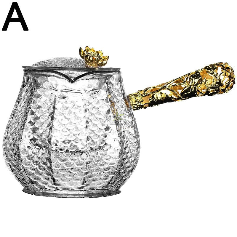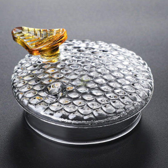 The uniquely shaped lid resembles an elegant leaf, complementing the glass teapot’s sleek aesthetic. Each teapot is meticulously handmade by skilled artisans, ensuring quality and beauty in every piece.