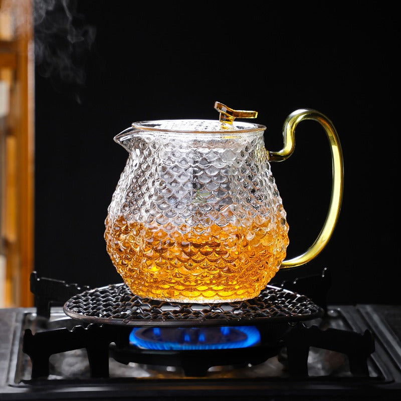 Crafted from pristine borosilicate glass, this teapot boasts exceptional durability and resistance to extreme temperatures. Its sturdy construction ensures longevity, making it a cherished companion for years to come.