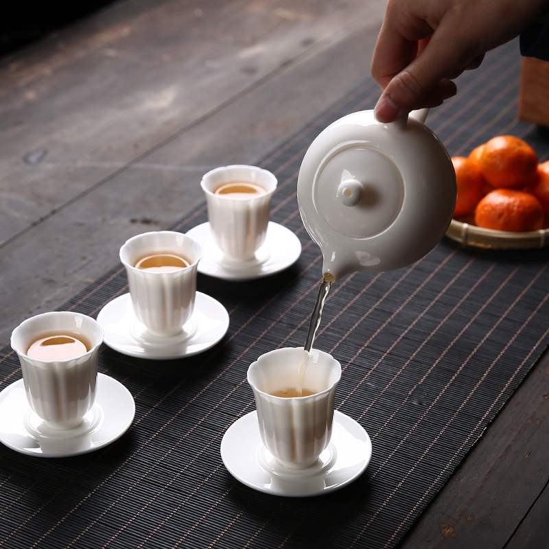 Overall, the Dehua White Porcelain Jade Tea Set provides an outstanding combination of form and function which makes it suitable for any special occasion, be it entertaining guests at home or taking some down time at work! Crafted with intricate detail combined with its contemporary design elements – you will definitely appreciate all that it has to offer! It will surely bring joy to all those lucky enough to experience it first-hand!
