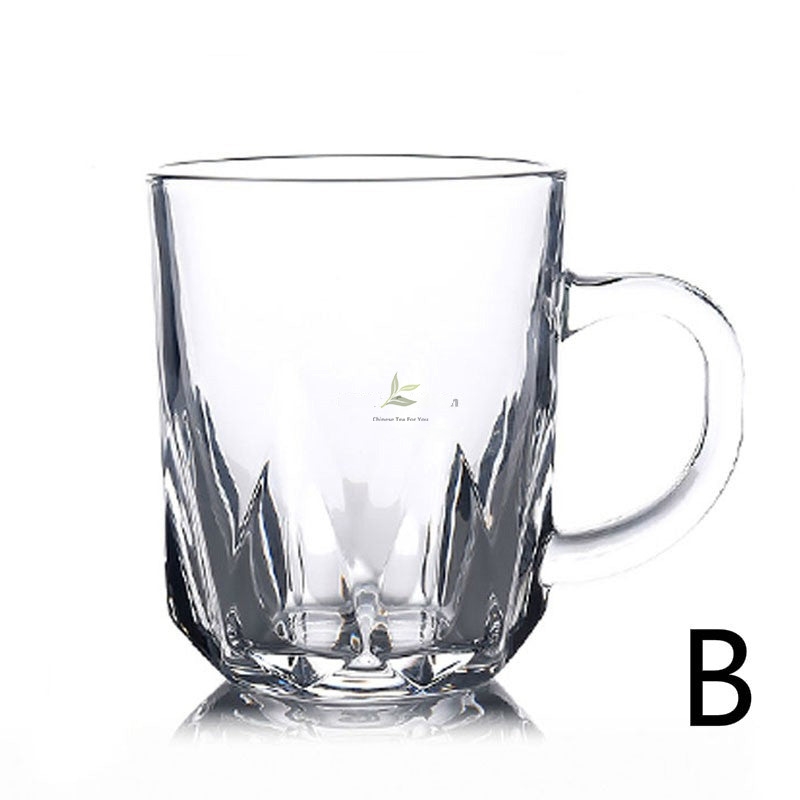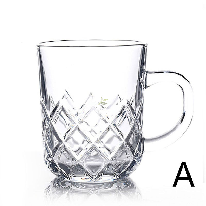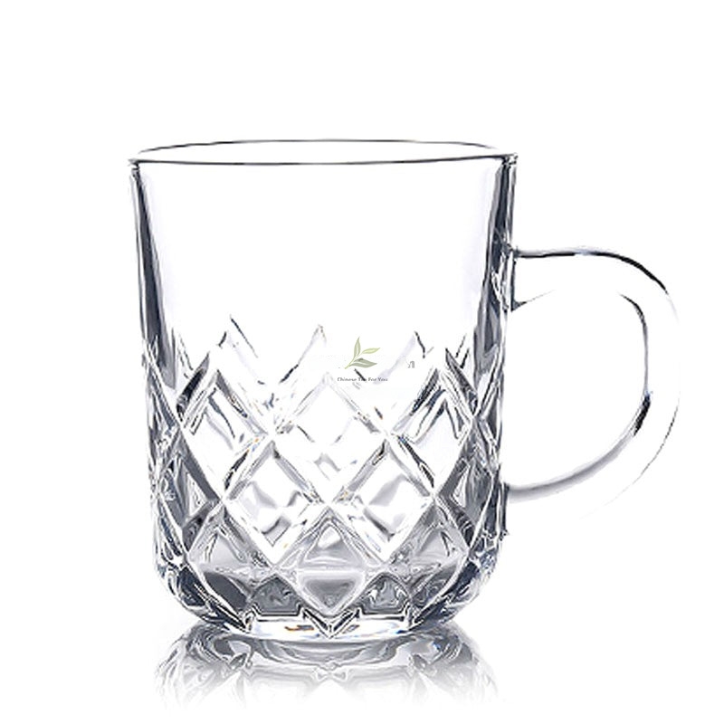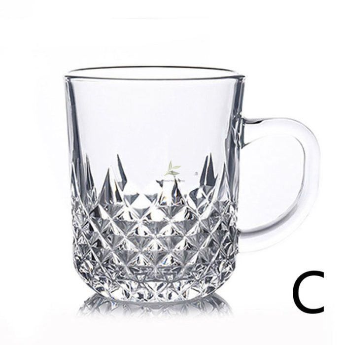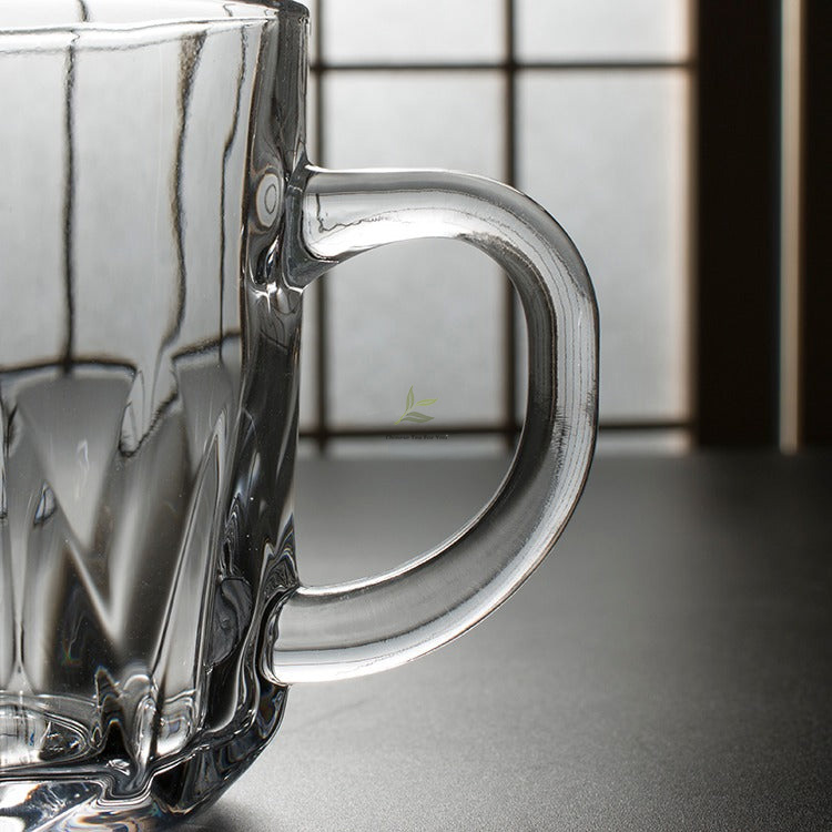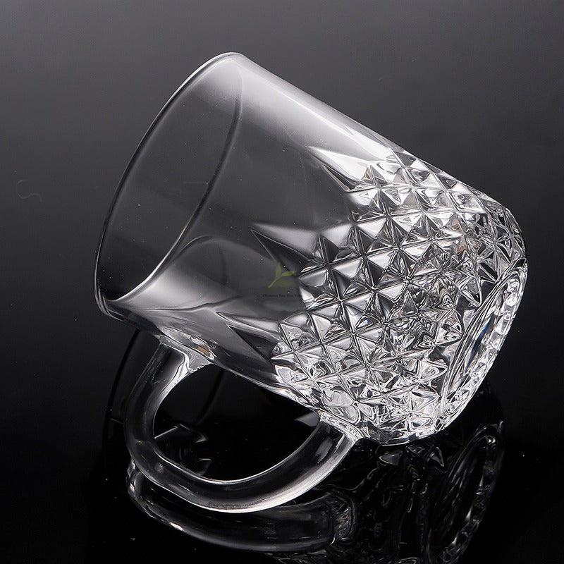 Diamond-Cut Glass Teacup with Handle Set of 2
