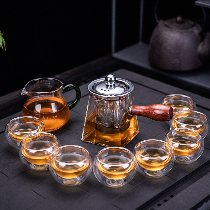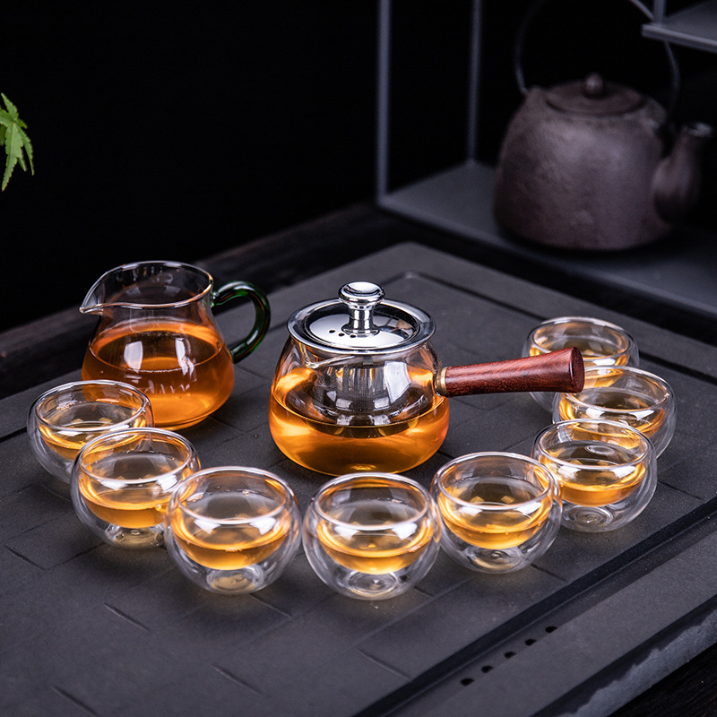 European Style Double-Layer Heat-Insulated Glass Tea Set with Drinking Cups
