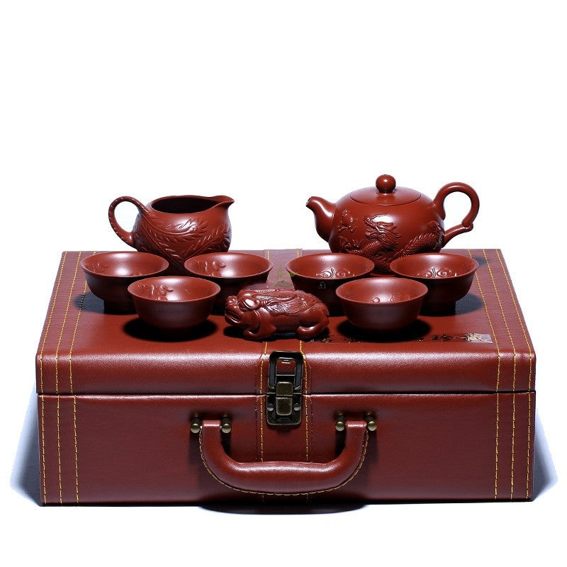 Yixing Zhu Ni Dragon Phoenix Tea Set