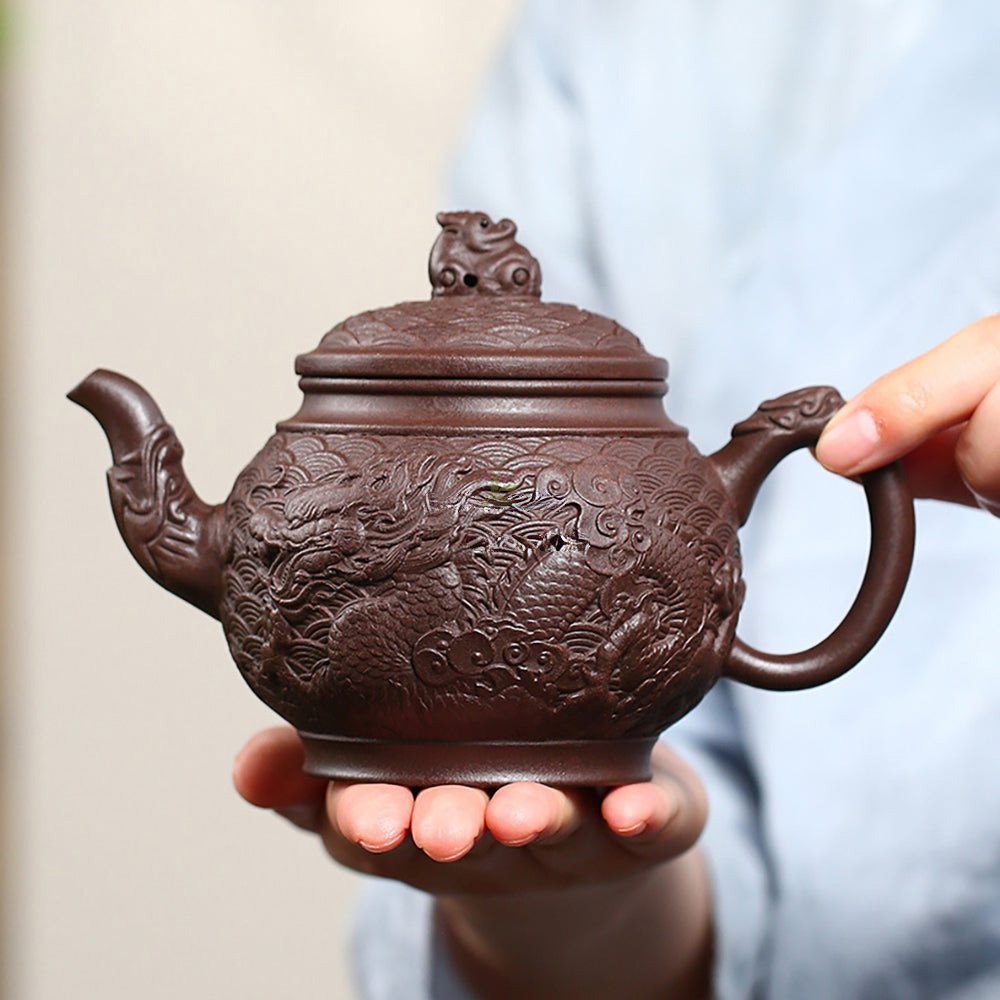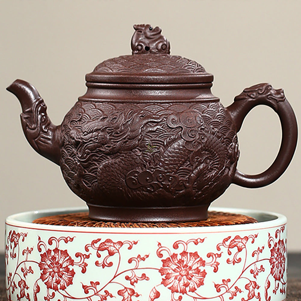 In Chinese mythology, the dragon embodies power, dignity, and enigmatic forces. Its presence in this design transforms the teapot into not just a functional utensil but a work of art imbued with cultural significance.