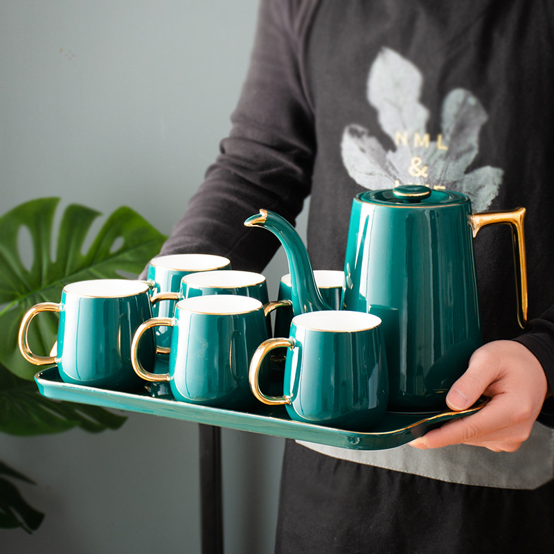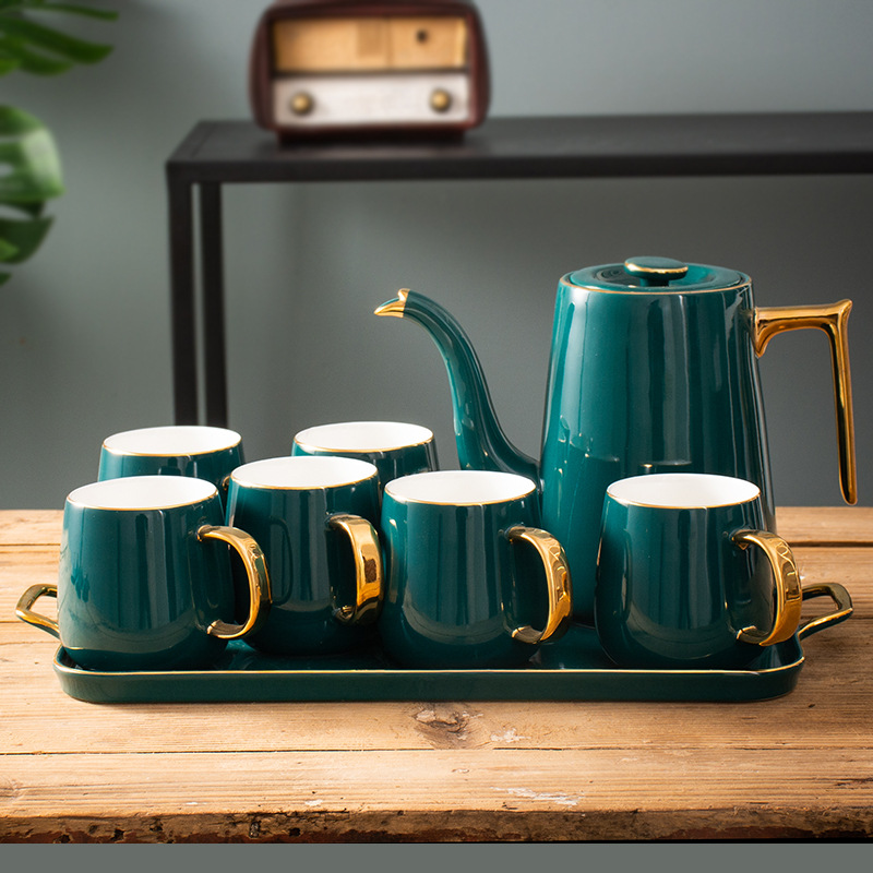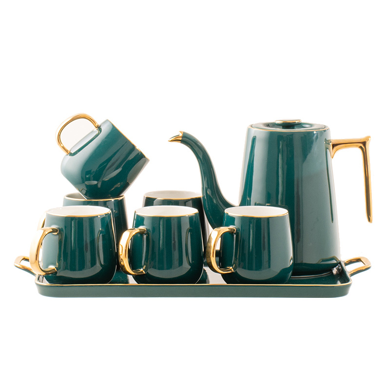 This Emerald Porcelain Tea Ware Full of Gold Luxury Tea Cup Household Nordic Tea Cup English Afternoon Tea Set is the perfect choice for those who appreciate modern design. The Nordic-inspired teapot, teacups, and saucers are simple, elegant, and stylish. The clean lines and minimalist design make it a perfect addition to any modern home. The gold accents on the porcelain add a touch of luxury, making it a tea set that is both practical and beautiful.