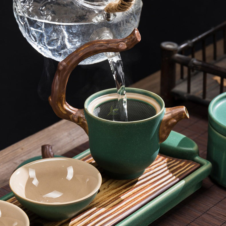 The Five Elements Japanese Tea Set is imbued with the ancient Chinese philosophy, embodying the elements of metal, wood, water, fire, and earth.
