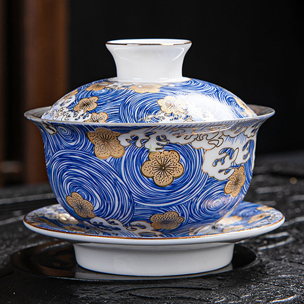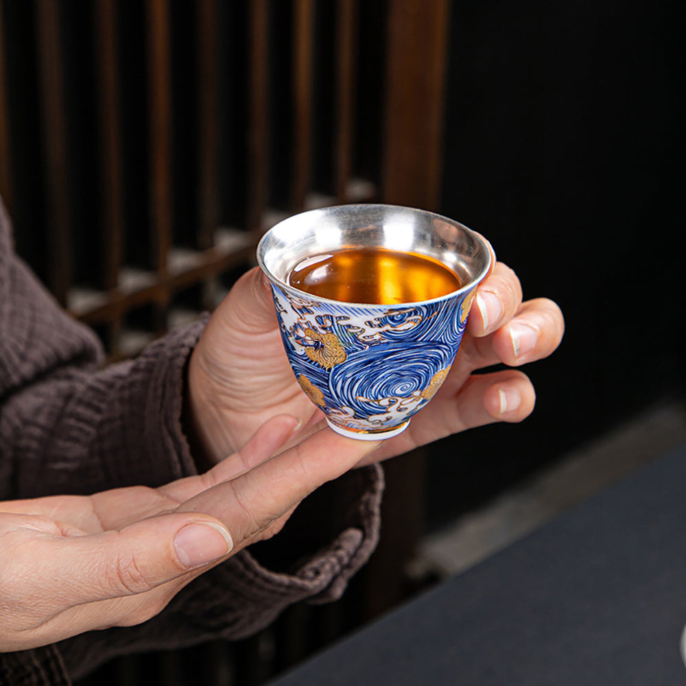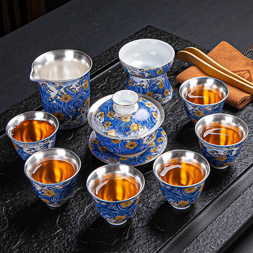 Gold-Blue Gilt Silver Sea Wave Tea Set
