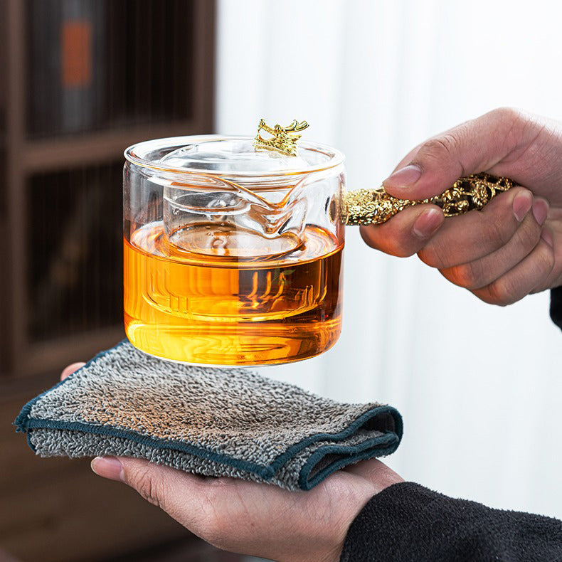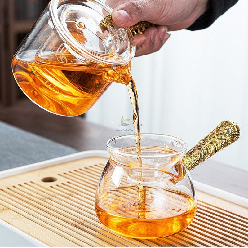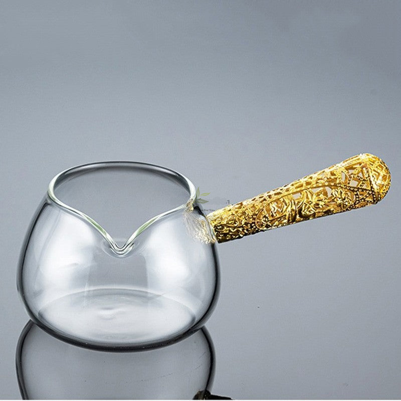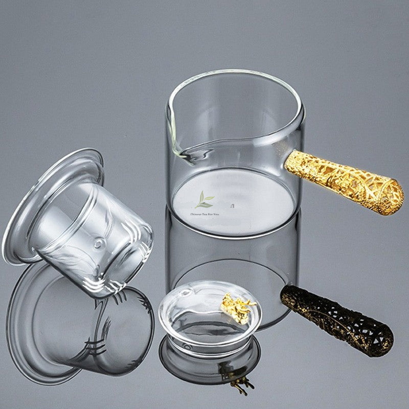 Immerse yourself in the serene art of tea drinking with our meticulously crafted Glass Tea Set, adorned with elegant golden handles that exude sophistication.