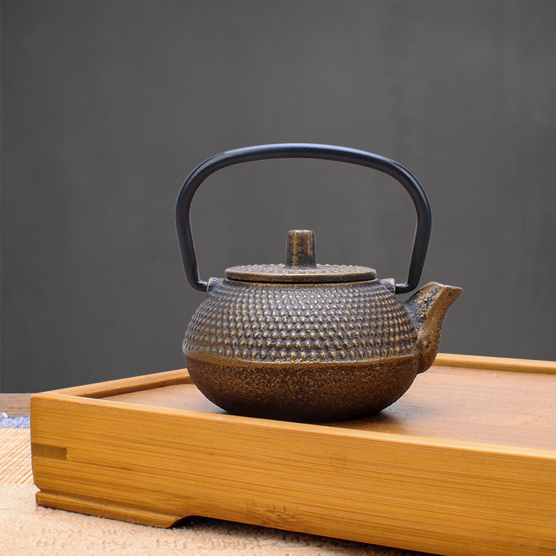 The Ornamental Mini Iron Pot is a traditional and functional piece, crafted from high-quality iron. The iron material of the teapot allows it to reach a higher temperature, preserving the heat of the tea and enhancing the taste of the water and the tea. The teapot handle is designed with a heat-resistant hoop handle, providing a comfortable grip and avoiding burns. The heavy lid of the teapot ensures that the water stays hot after boiling, and the spout is designed to allow a smooth water flow, making the tea-brewing experience more enjoyable.