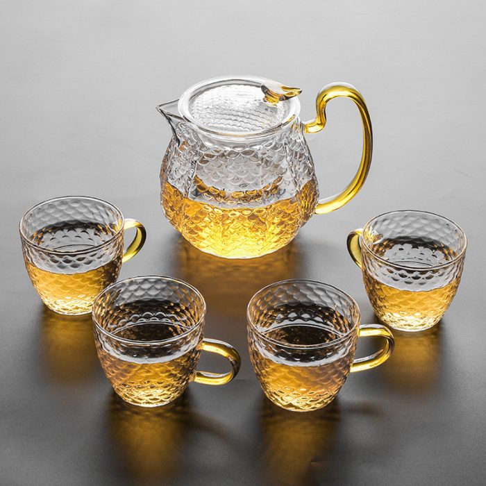 The Glass Tea Set is an exceptional option for those who enjoy drinking tea. The set is made of clear glass, giving it a unique and distinctive appearance. The design of this tea set is both novel and eye-catching, making it a stand-out piece. The quality of this set is superior, and it is also easy to maintain. Not only is it exquisitely made, but it is also durable and reasonably priced, making it a great purchase for those who want to elevate their tea drinking experience. The delicate design of this set will transport you to a peaceful and enjoyable atmosphere, perfect for enjoying a cup of tea.