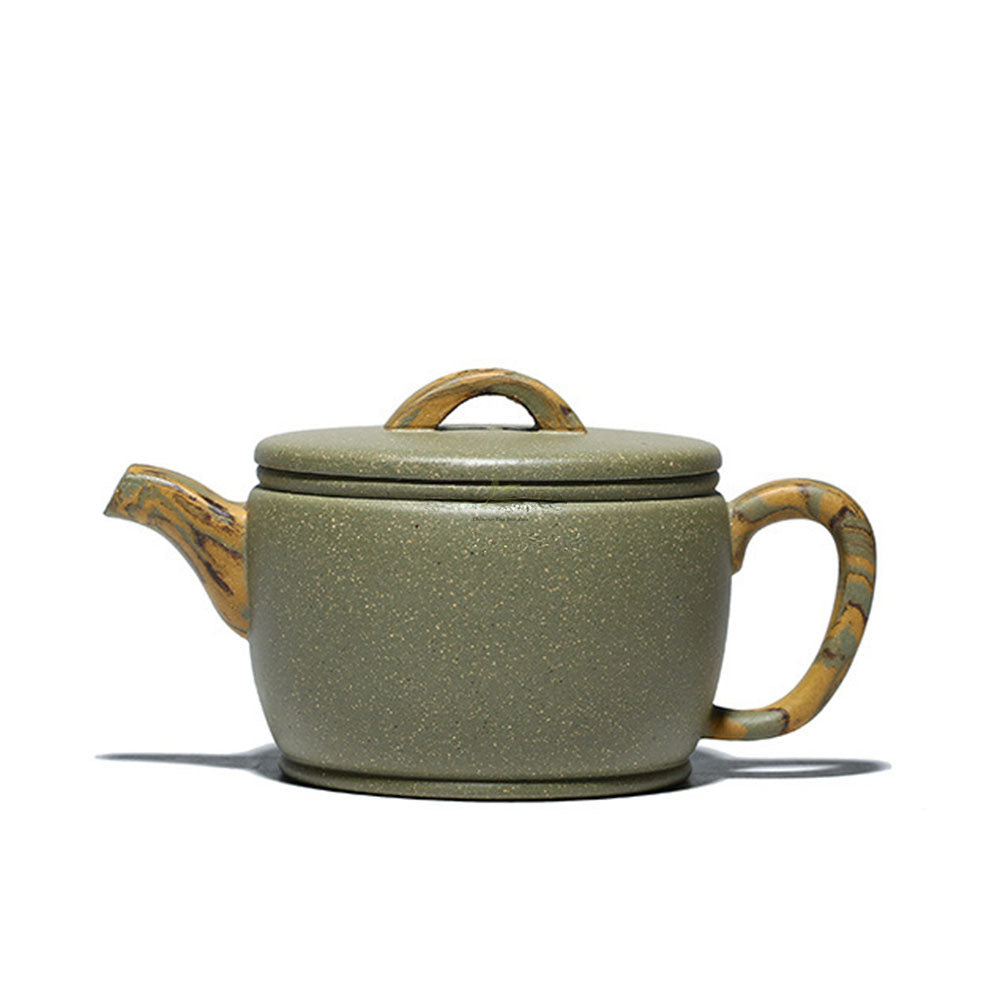 Crafted from the esteemed Huanglong mountain raw ore purple clay, this extraordinary tea set is a testament to the artistry of Yixing tradition. Its enchanting light green hue transforms into a vibrant yellow after firing, revealing intricate color and texture that captivates the senses.