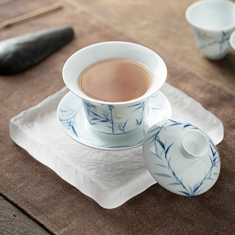 Exceptional Craftsmanship: Handcrafted from high white clay, this gaiwan boasts smooth and delicate porcelain that shimmers with a warm and clear luster. The underglaze hand-painted bamboo design, inspired by nature, embodies flexibility and strength, adding an air of vitality to the piece.