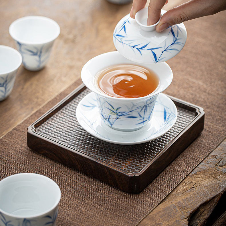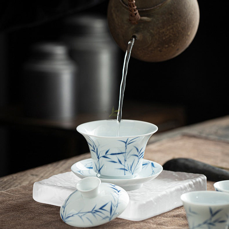 This exquisite Hand-painted Bamboo White Porcelain Gaiwan is a testament to the artistry and tradition of Chinese tea culture.