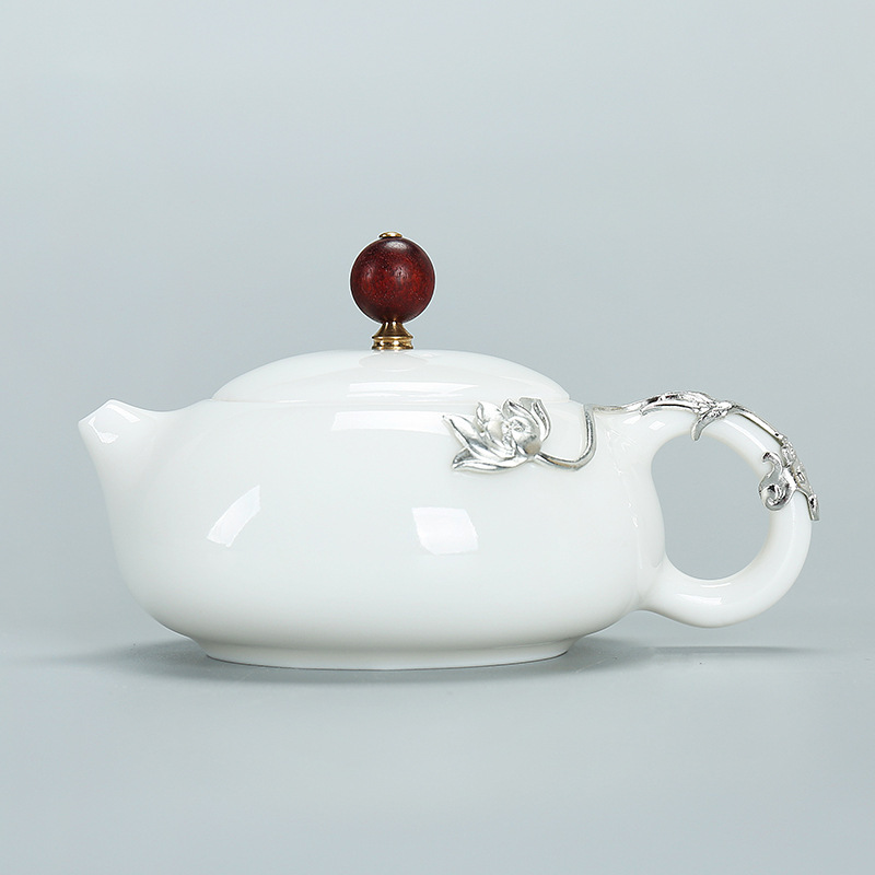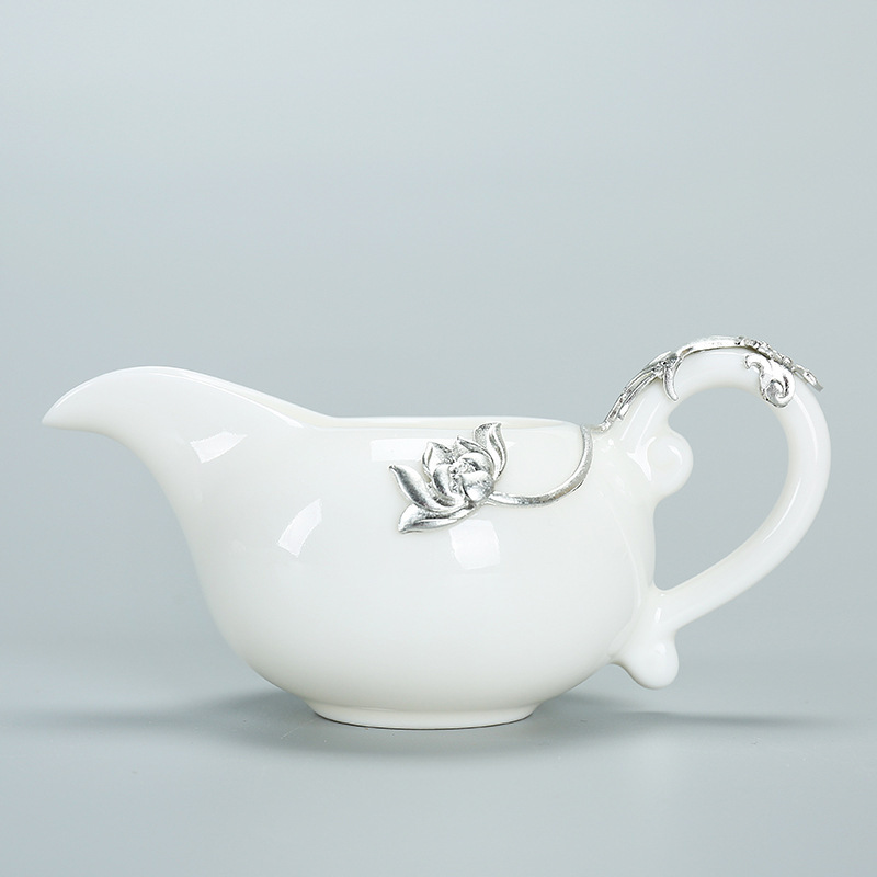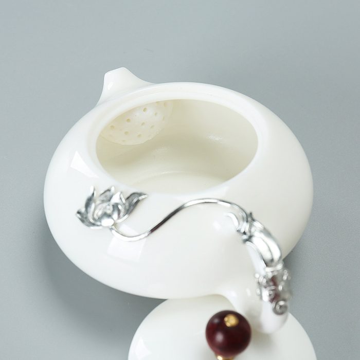 White Jade Ceramic Silver Inlaid Kung Fu Tea Set – High Grade Teaware