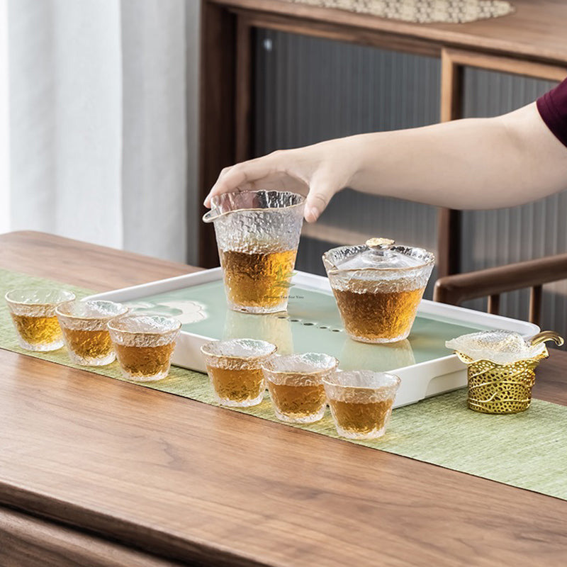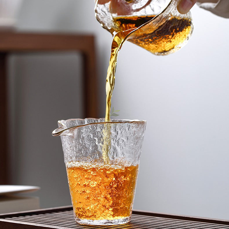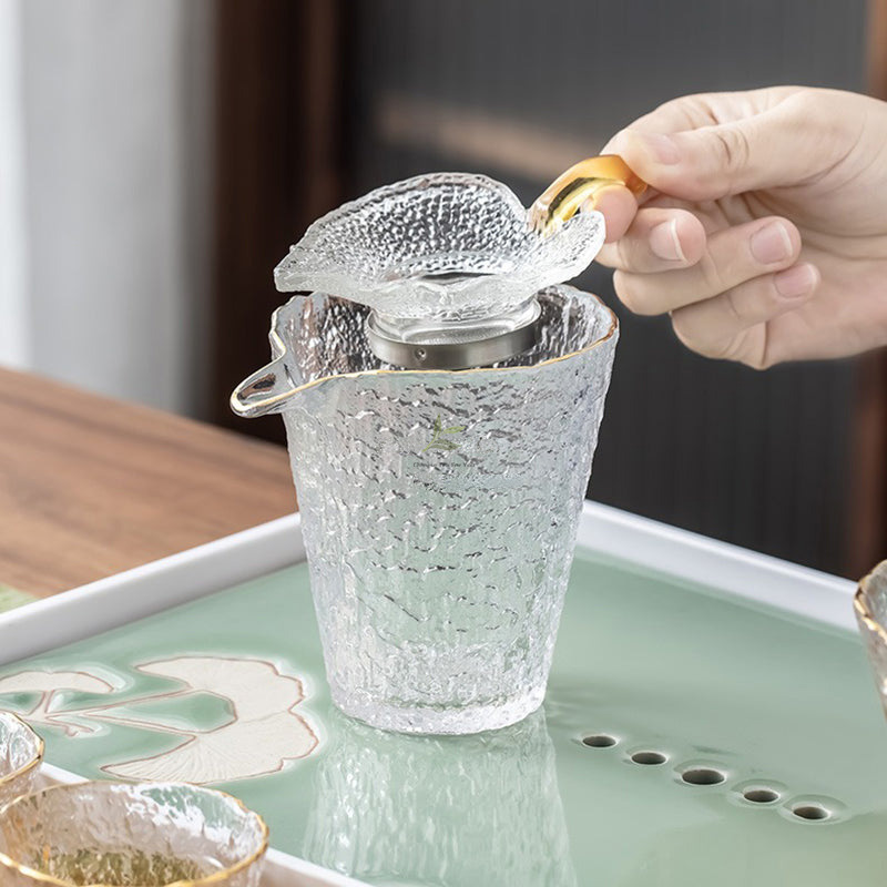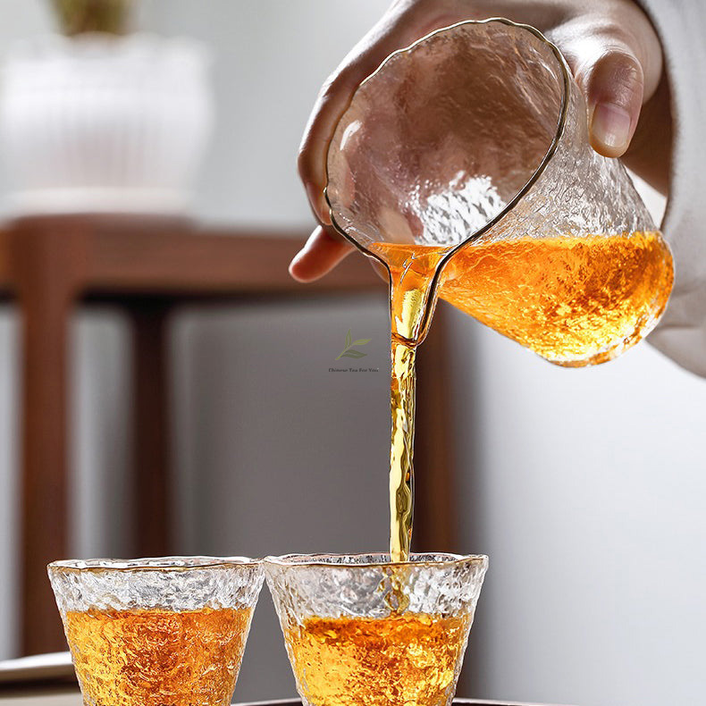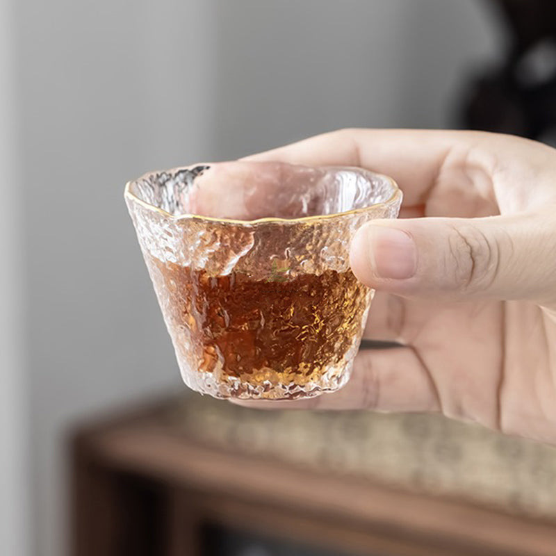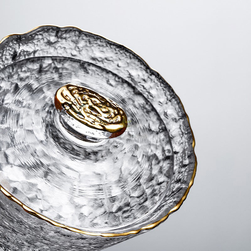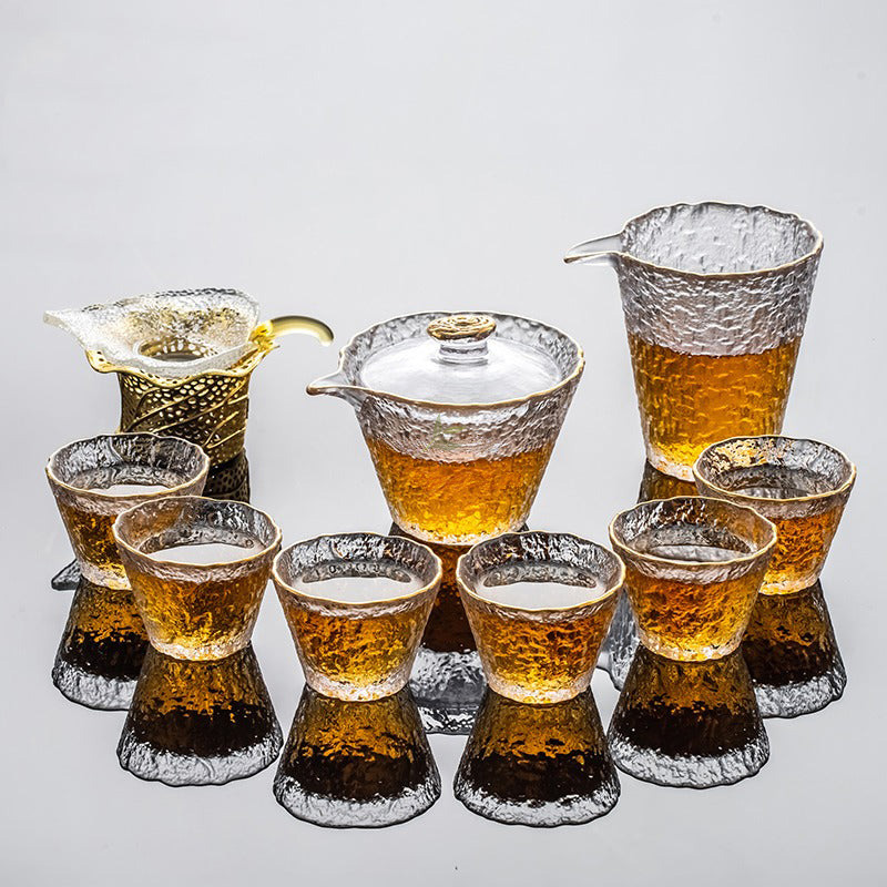Indulge in the artistry of tea drinking with our captivating Ice Block Glass Tea Set with Golden Rim. Meticulously crafted using ancient techniques, this set is a mesmerizing blend of elegance and functionality.
