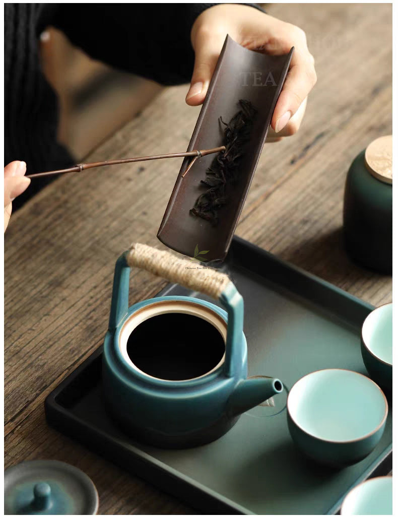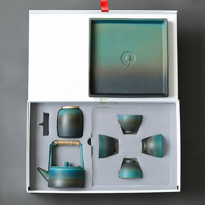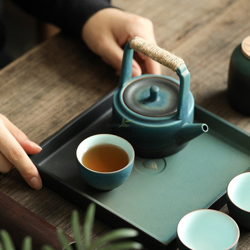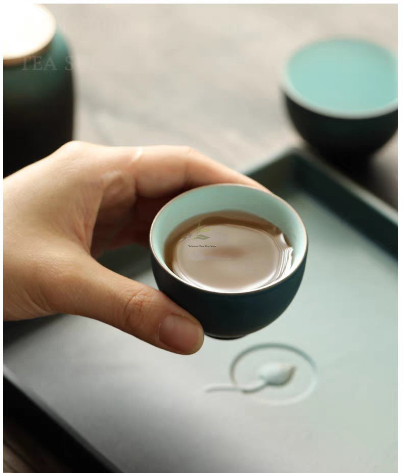 Japanese Cyan Ceramic Tea Set: A Reflection of Tranquil Elegance