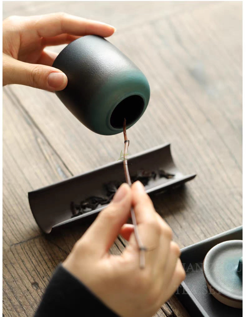 Adorned with a mesmerizing dark green glaze, this tea set transforms into a vibrant canvas under the intense heat of a 1300-degree kiln. The resulting渐变色效果 creates a captivating symphony of colors that cascades seamlessly across the surfaces.