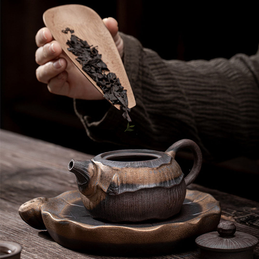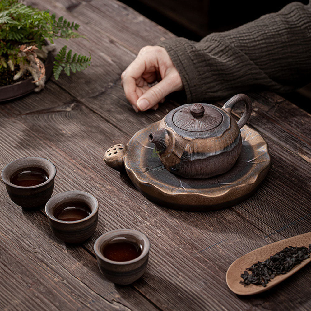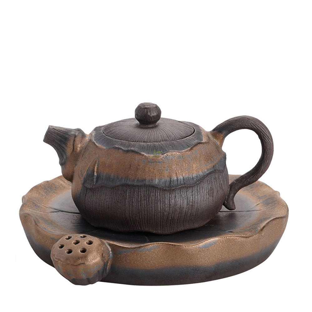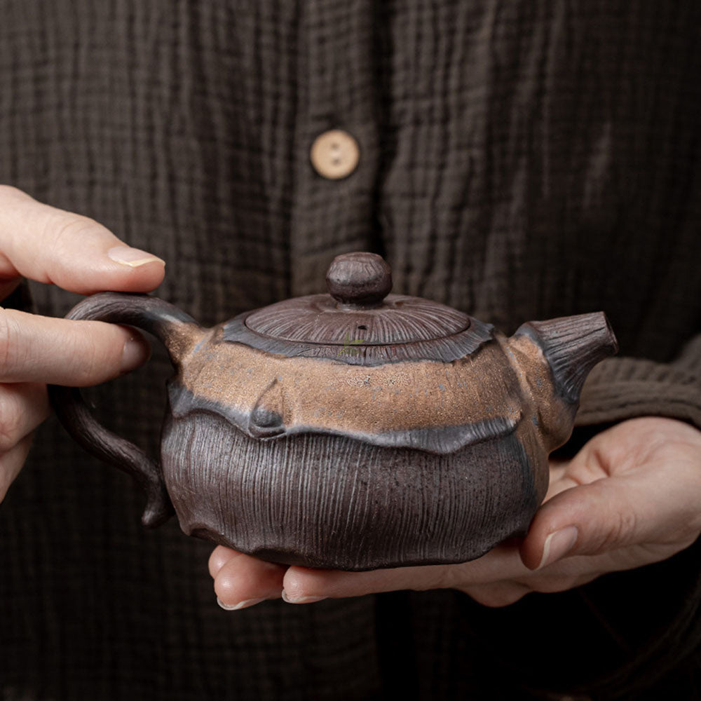 Indulge in the tranquility and artistry of Japanese tea culture with our exquisite Iron Glazed Lotus Teapot. Crafted from ancient raw ore rock clay and adorned with an elegant iron glaze, this teapot embodies the beauty and heritage of the Far East.