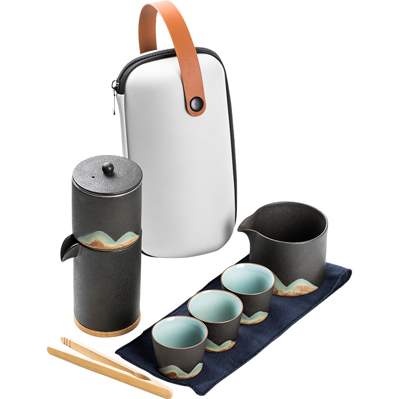 Japanese Ceramic Glazed Travel Tea Set with One Pot and Three Cups – Hand-Painted Design