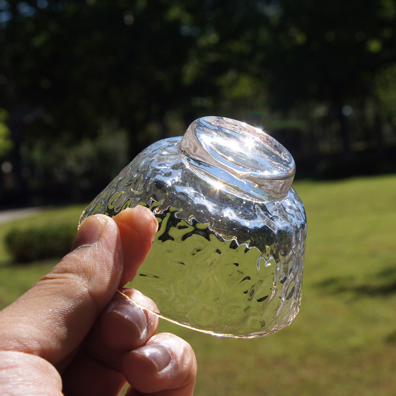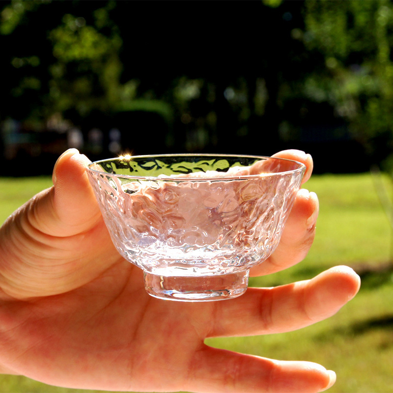 This handmade Japanese hammere heat-resistant glass tea cup is ideal for making and serving Kung Fu tea. The transparent design allows you to witness its exquisite brewing process – like an expert appreciating his craftsmanship! Perfect for passionate tea enthusiasts and any collection.