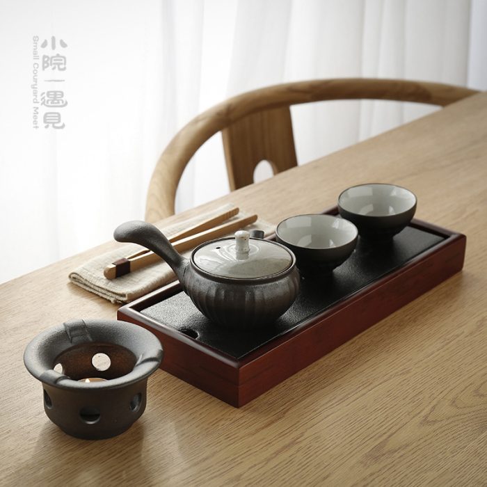 This Japanese Style Simple Kungfu Teaware Set makes an excellent addition to your home teaware collection. Featuring an elegant black-glazed pot, two handmade cups and a tray made of high-quality ceramic – perfect for tea ceremonies as well as everyday use!