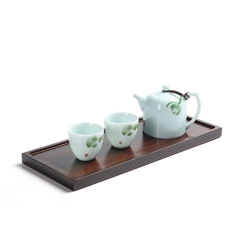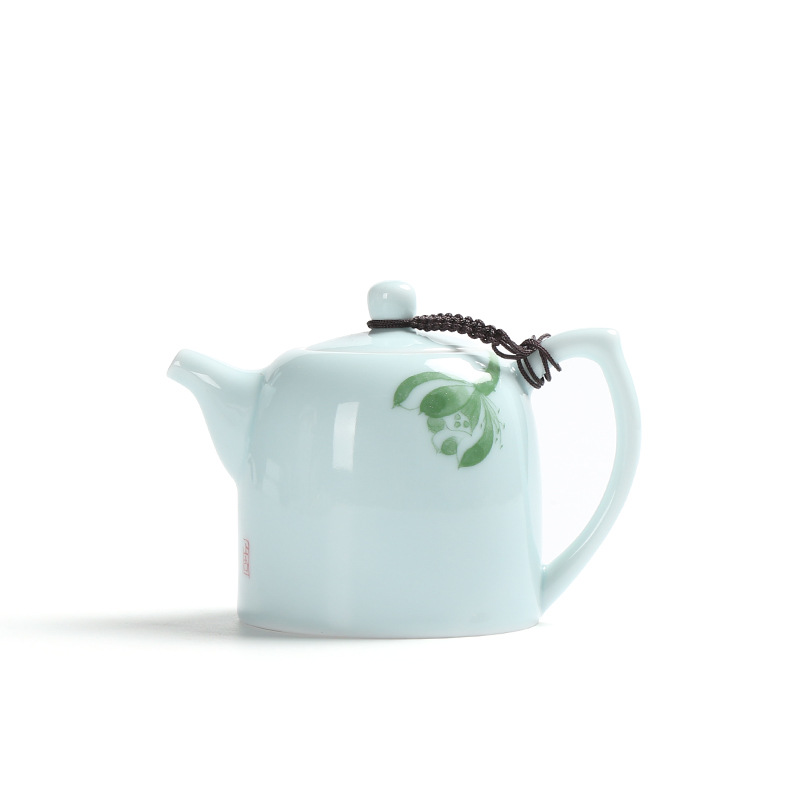 This Imperial Concubine Pot Celadon Hand-painted Tea Set is an exquisite tea set perfect for any special event. Combining traditional Chinese celadon ceramic glaze with modern design elements creates a striking and modern aesthetic, sure to dazzle guests at any event. Crafted from durable porcelain with beautiful hand-painted designs in pink, green, and black hues; featuring two cups equipped with comfortable handles for easy pouring as well as a lid with drain hole allowing easy water drainage after use.