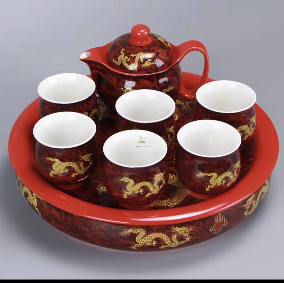 Jingdezhen Double Wall Dragon Tea Set With Tea Tray