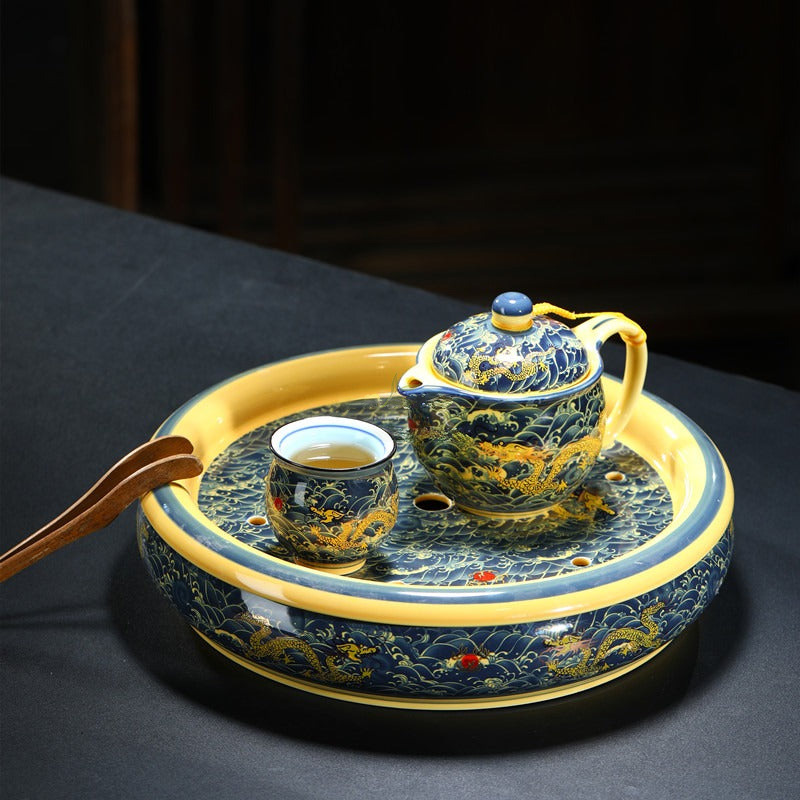 Jingdezhen Double-Walled Dragon Tea Set with Matching Tray