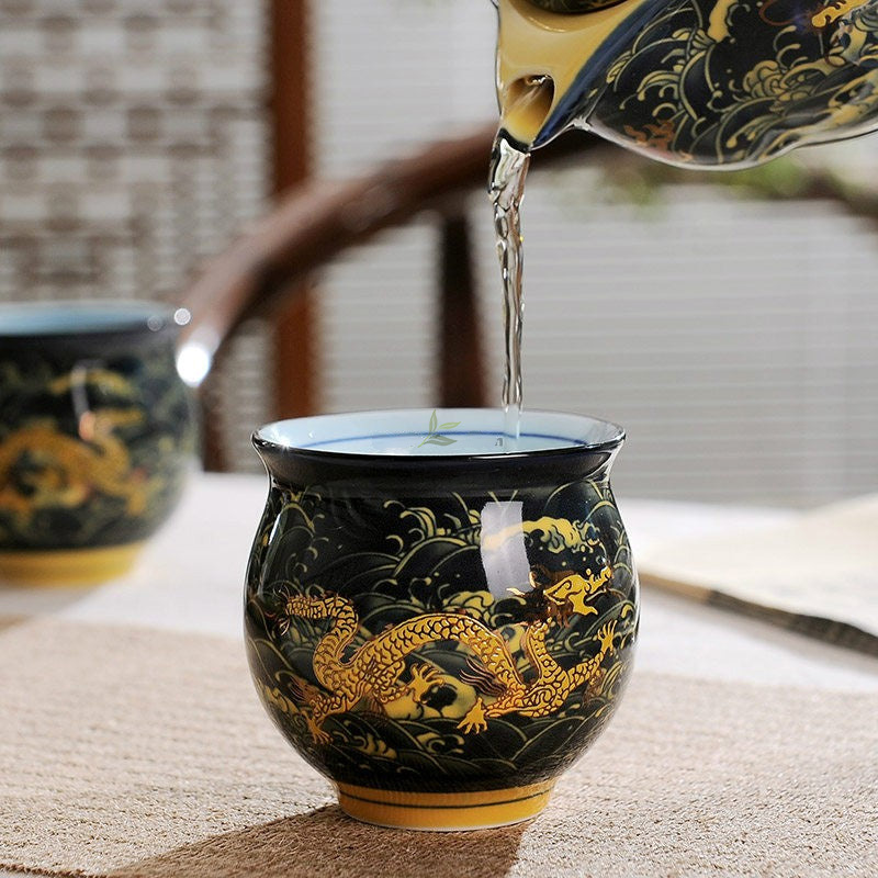 Share the joy of tea with your loved ones with this thoughtful gift. Its exquisite presentation will grace any shelf or desk, becoming a cherished heirloom to be passed down through generations. Immerse yourself in the rich tradition of Chinese tea culture with this incomparable Jingdezhen Double Wall Dragon Tea Set With Tea Tray.