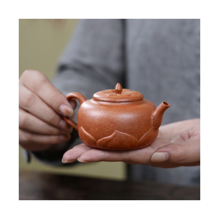 The teapot’s elegant lines and captivating lotus flower theme create an aura of beauty and grace, reminiscent of a lotus in full bloom. Its fine, oily surface resembles the delicate skin of a pear, adding a touch of sophistication and allure. With a 150ml capacity, it is the perfect companion for savoring exquisite teas alone or sharing intimate moments with one or two tea connoisseurs.