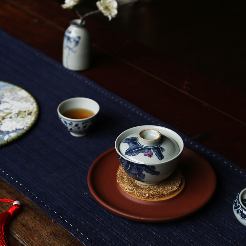 GaiWan Chinese Jingdezhen Blue & White Porcelain Tea Cup – Hand-Painted Antique Design
