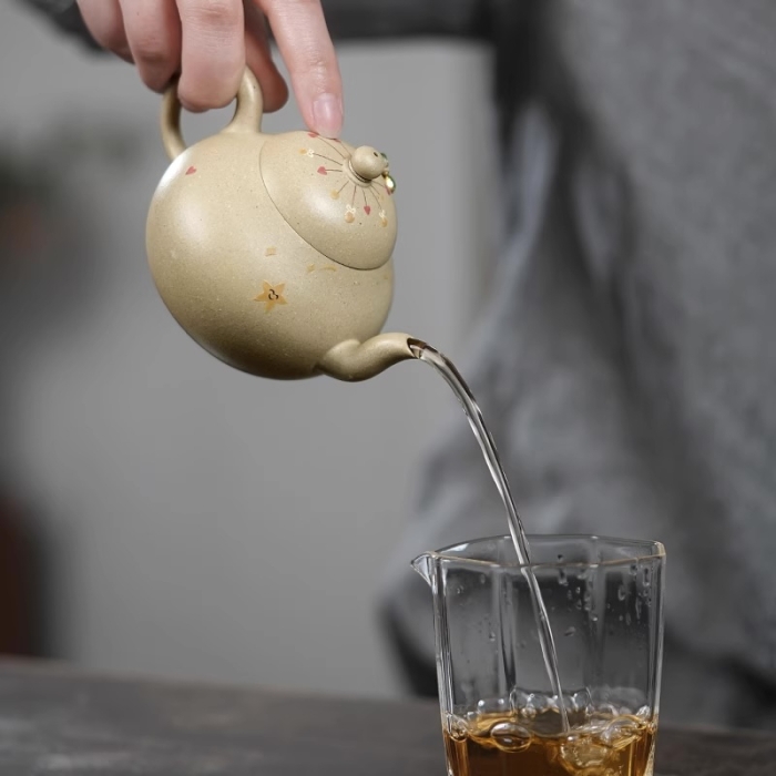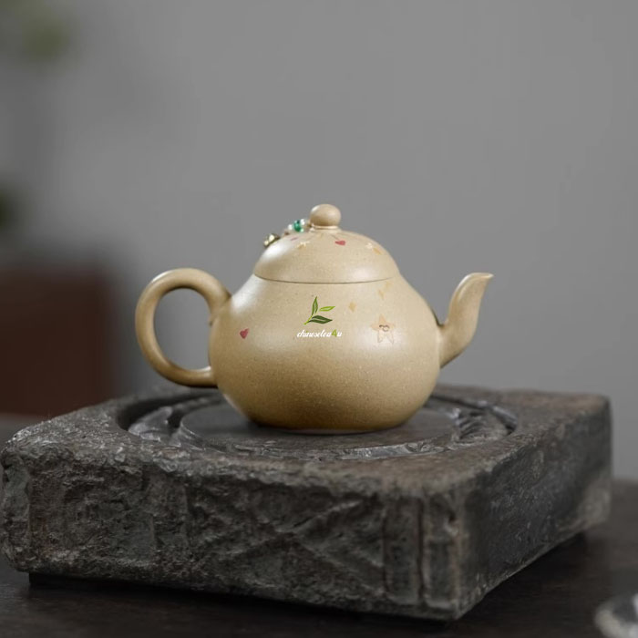 - Uniquely Handcrafted: Each teapot is a unique creation by skilled artisans, ensuring no two are exactly alike. The artist’s expertise shines through in every detail, from the smooth curves of the pear-shaped teapot to the intricate clay painting.