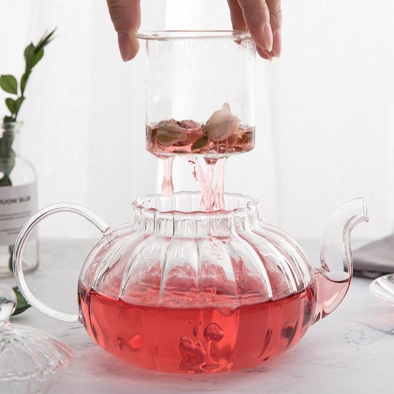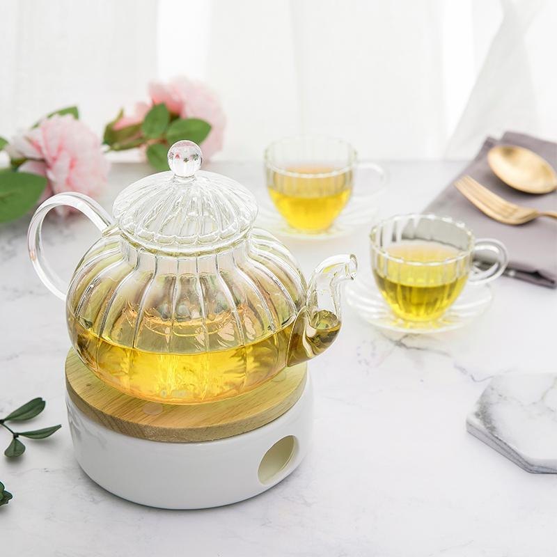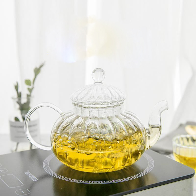 Glass Teapot – Striped Pumpkin Shape – High Temperature Resistant