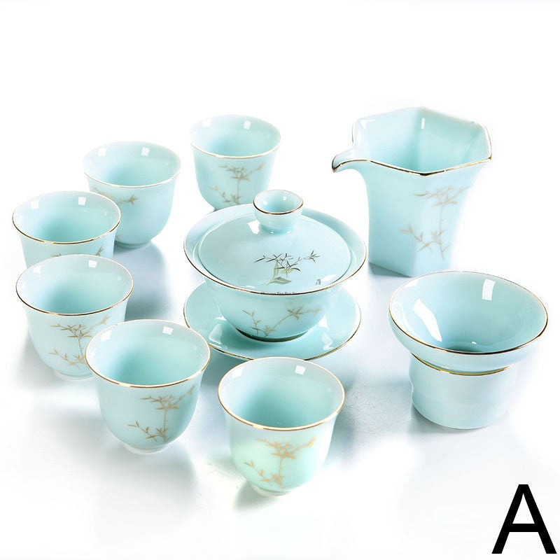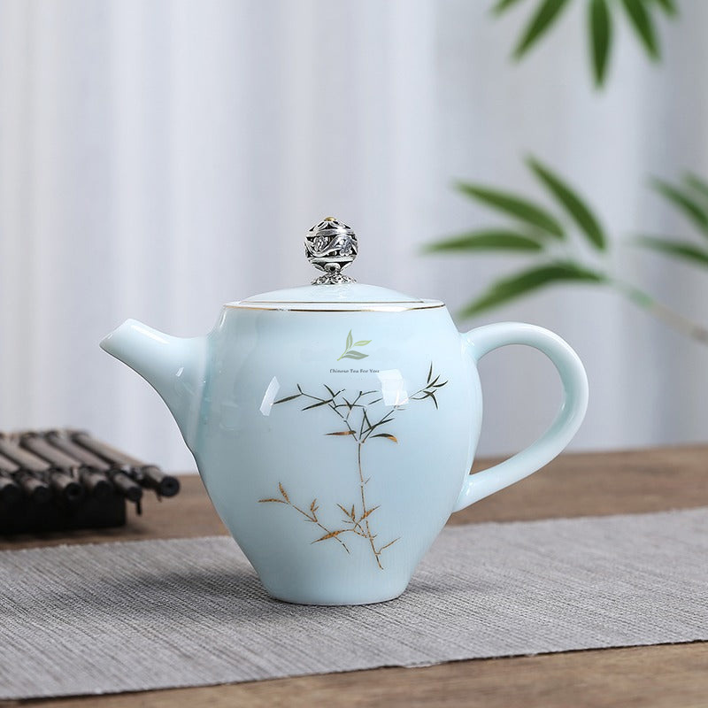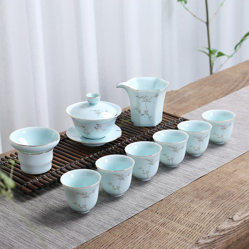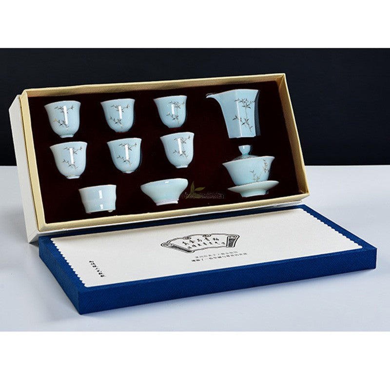 Sky Blue Porcelain Bamboo Chinese Tea Set