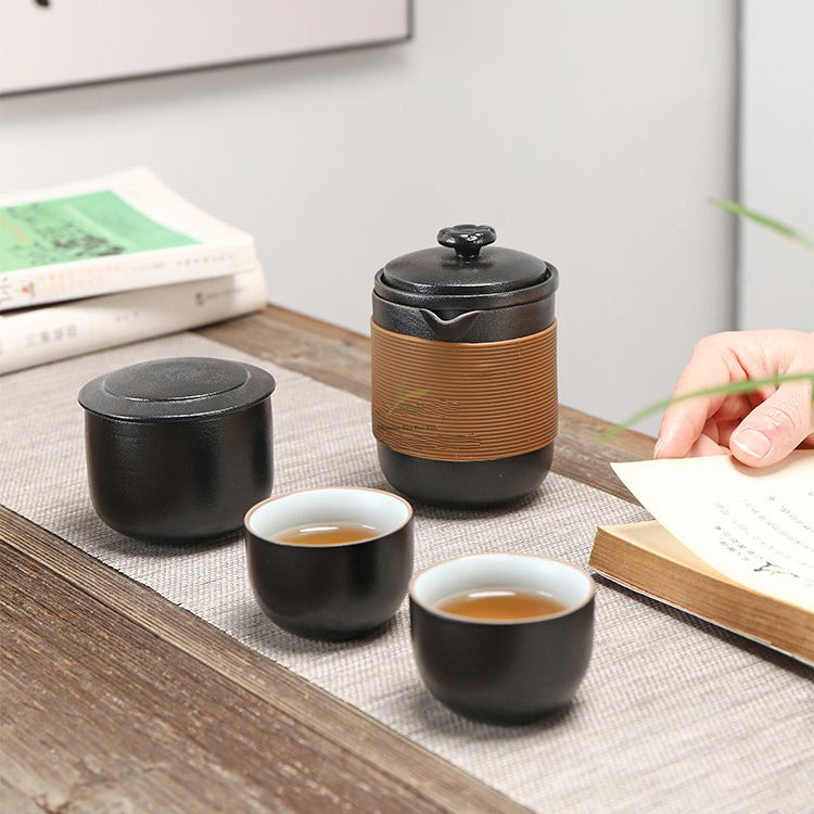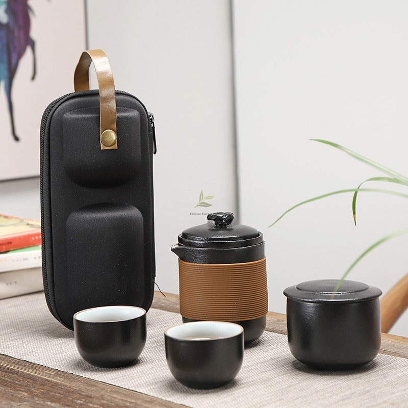 Black Ceramic Travel Tea Set: Savor Tea Delights on the Move