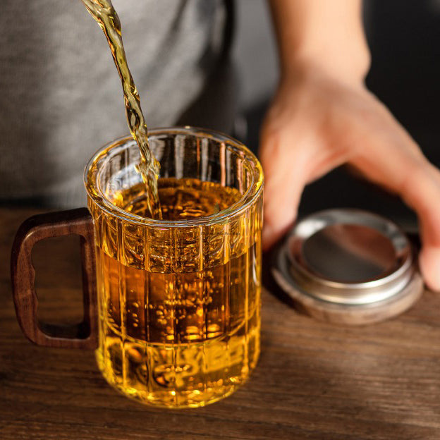 Indulge in the art of tea savoring with our exquisite Striped Glass Tea Cup with Infuser. Crafted from high-quality borosilicate glass, expertly fired at temperatures exceeding 600 degrees, this cup ensures durability and unmatched clarity.