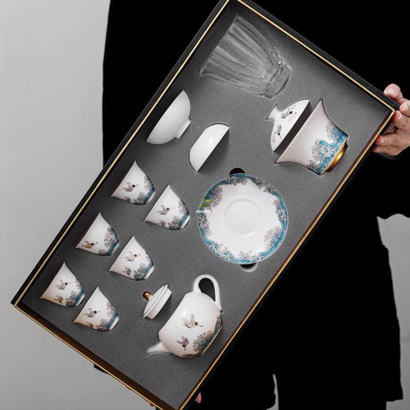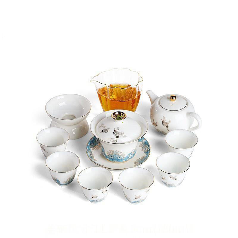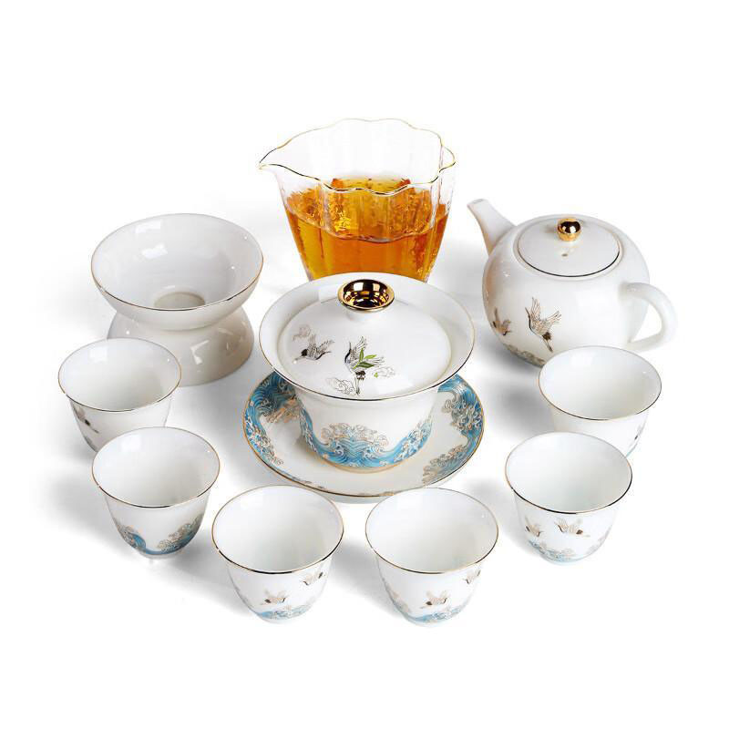 A Refined Harmony of Beauty and Taste: Ceramic Sulet-jade Red-crowned Crane Tea Set