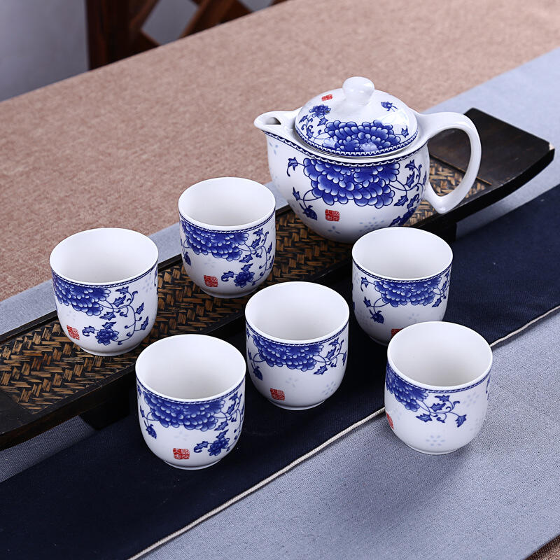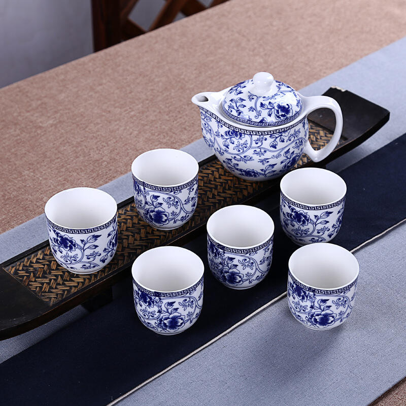 Chinese Kung Fu Tea Set – 7 Piece Flat Double Cup Teapot Set